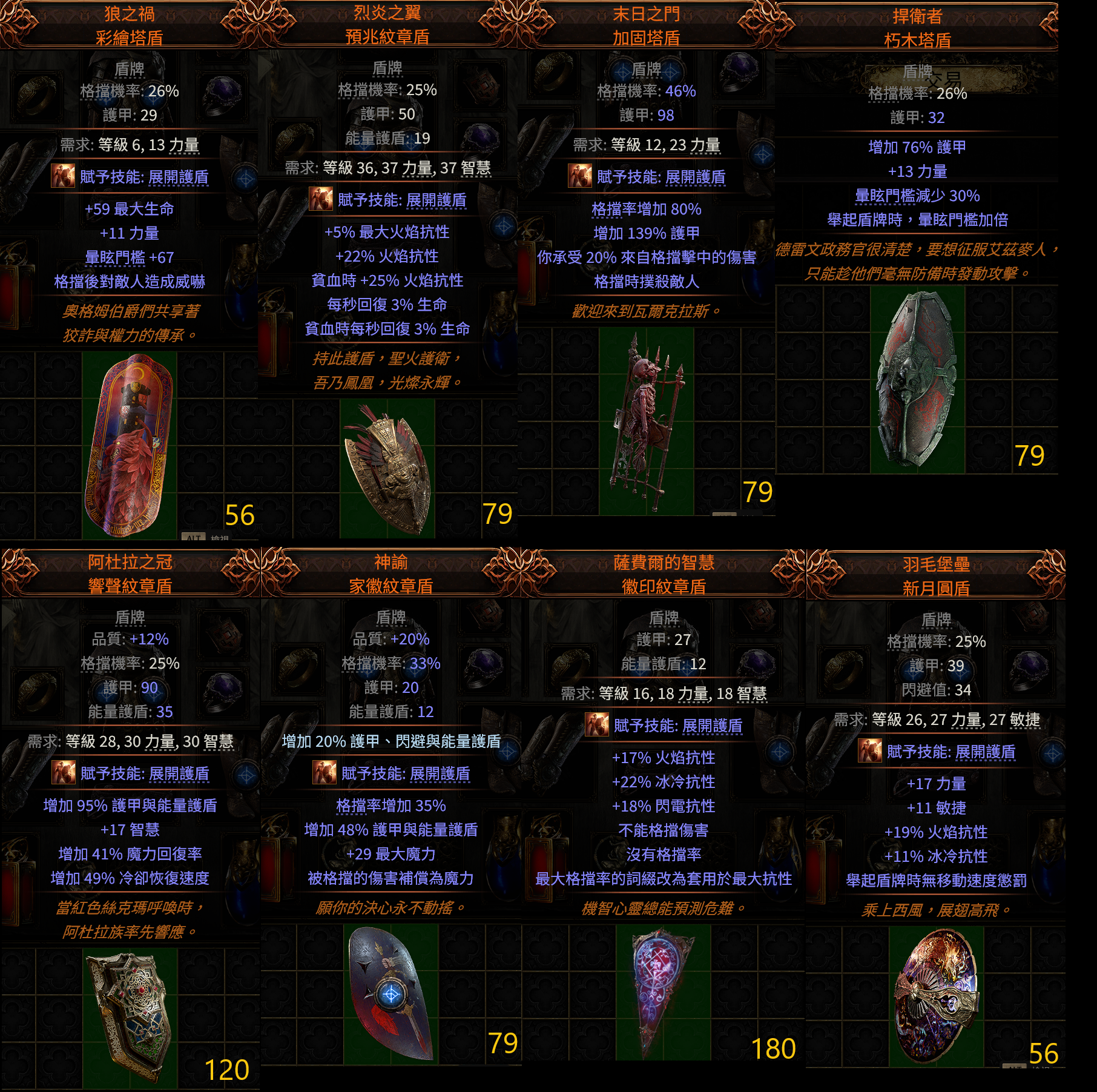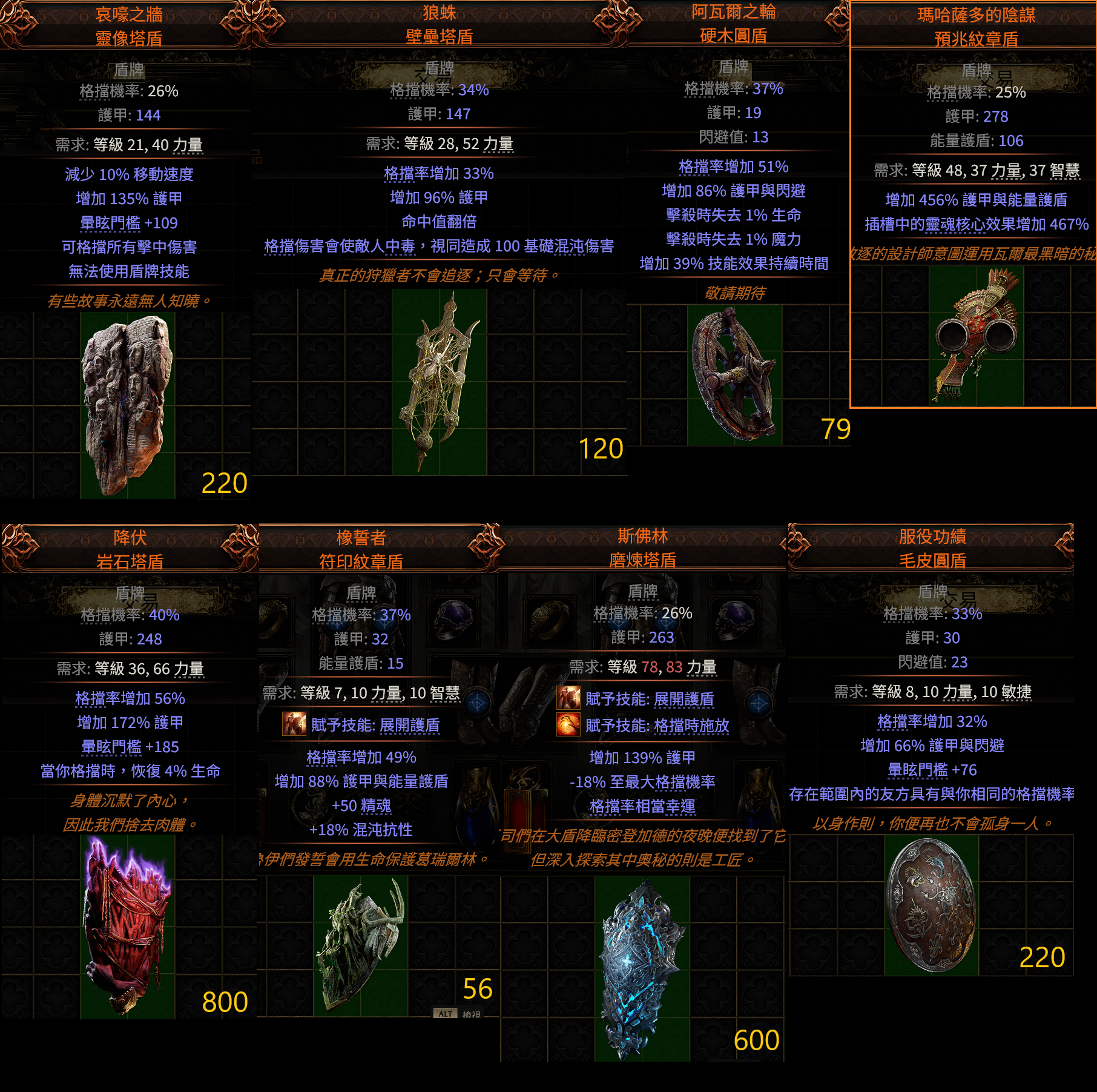 道具 【標準】 『盾』捍衛、薩費爾、末日、哀嚎、降伏、狼蛛、斯佛林、阿瓦爾、服役、瑪哈薩
