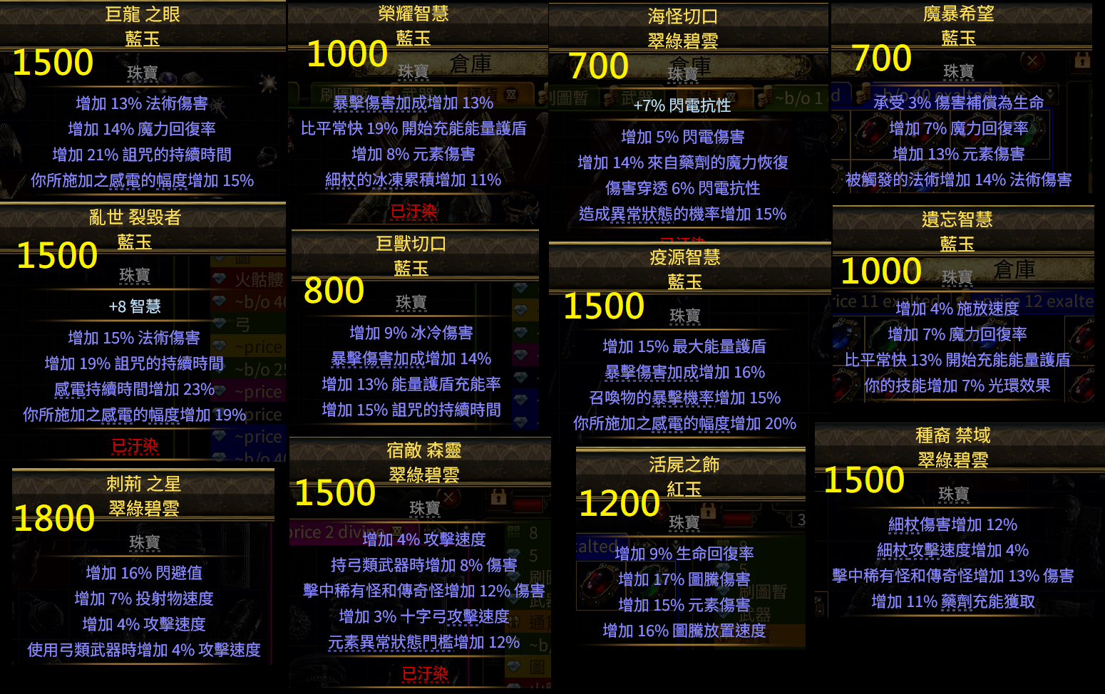 道具 【畢業珠寶】 電法 召喚 泰坦 銳眼 閃打 傭兵 箭帶詞綴效果 生命回復 感電幅度