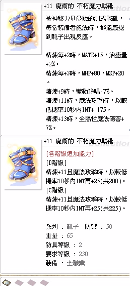 @230等 +11不朽魔力戰靴(練功時常駐Int+175)