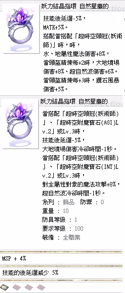 @100等 妖力結晶指環(技能後延遲減少5%)