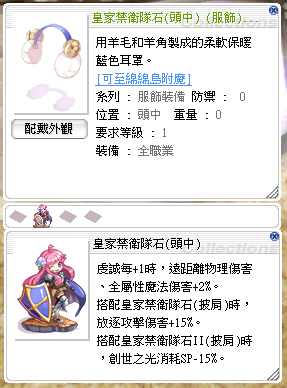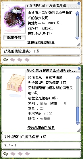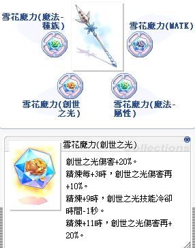 *搭配思念體破壞因子研究錄劍士篇(對全體型魔法攻擊+15%.創世之光傷害+30%)