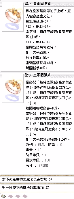 @100等 皇軍圖騰戒(對一般魔物魔法攻擊+5%)