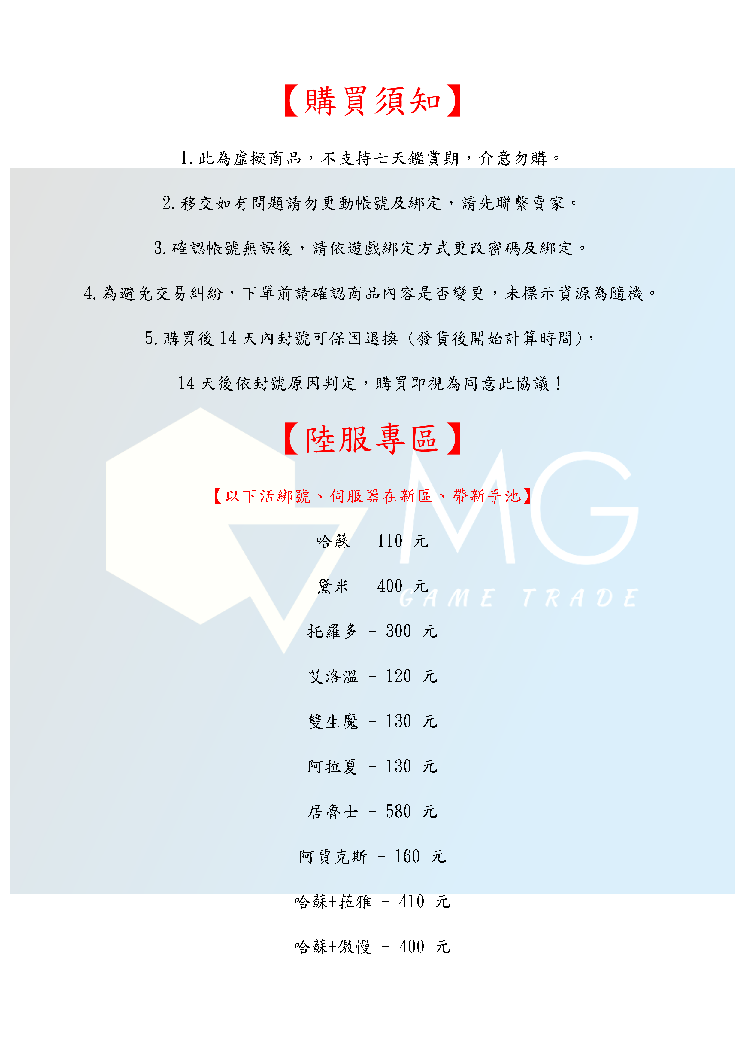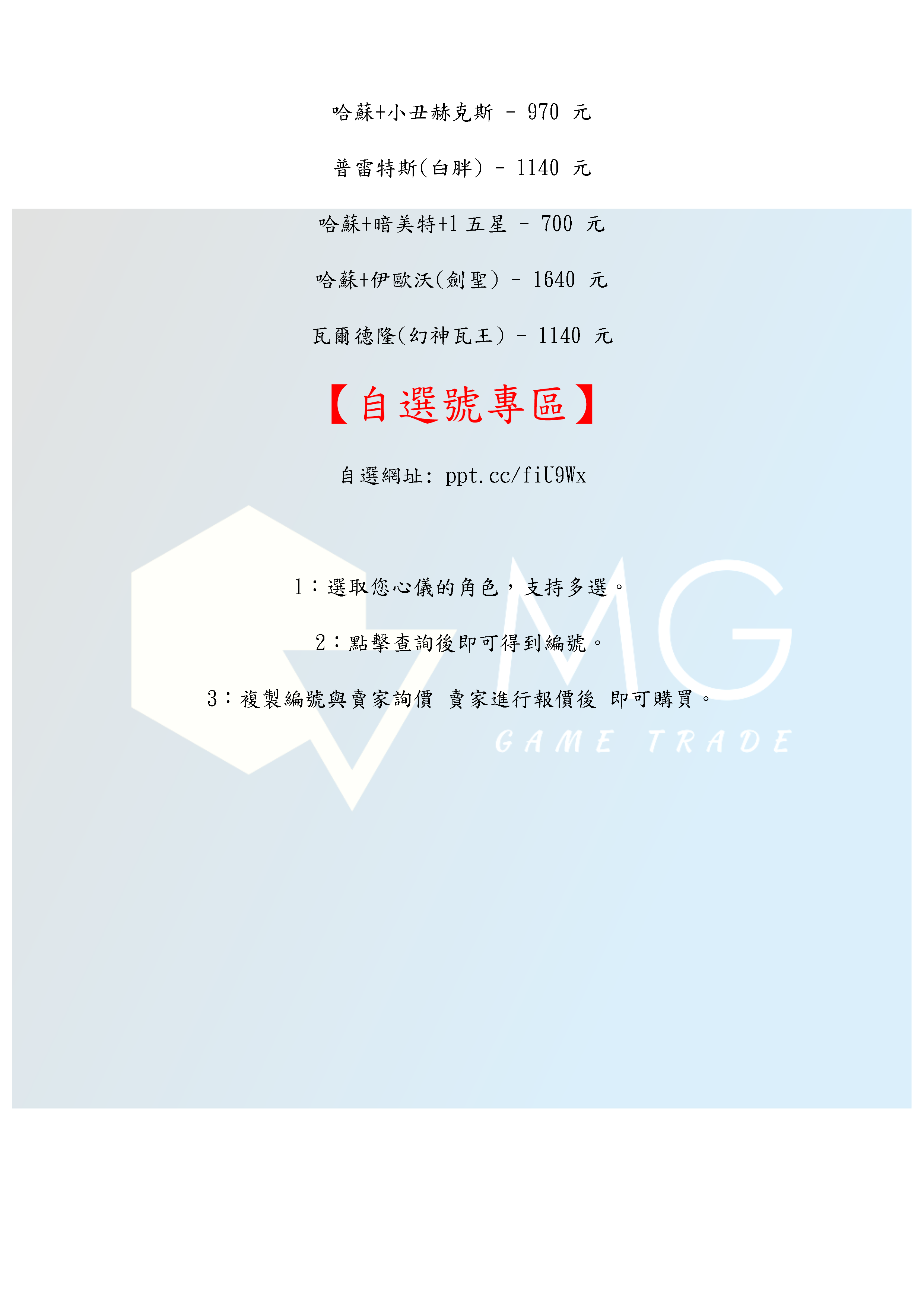 帳號 【初始號】 【MG數碼】 陸服 多石號 多素材號 初始號 自抽號 自選號 自選組合