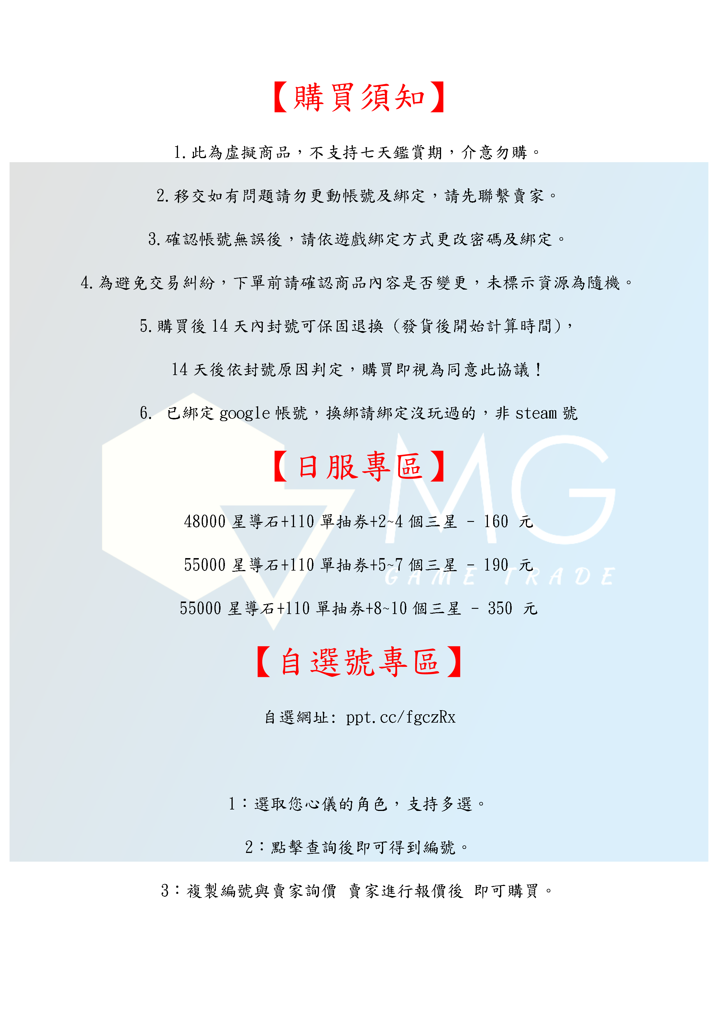 帳號 【初始號】 【MG數碼】 日服 國際服 多石號 多星導號 初始號 自抽號 自選號 自選組合