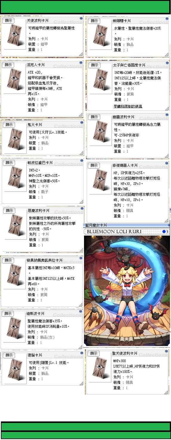 聖天使波利卡2000 特價300限1 (RO前中期最實用的卡沒有之一,所有SP恢復的卡加再一起都沒有一張聖天波回的多,100%真的超多,也是練分身的首選)