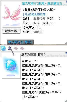 搭魔咒攻擊石(頭上中下) 有全屬性魔傷+25%,S.Matk+6,SPL+3