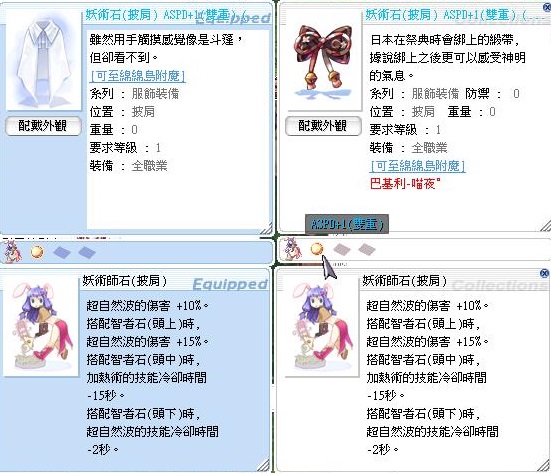 道具 (二選一)隱形披肩/櫻之祭典緞帶(妖術師石披肩+ASPD+1(雙重石))超自然波