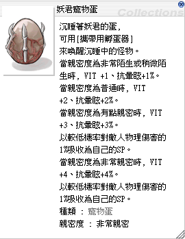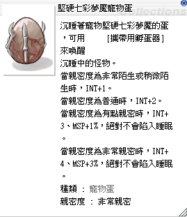 另有堅硬夢魘寵物蛋(非常親密,未取名)= 100T