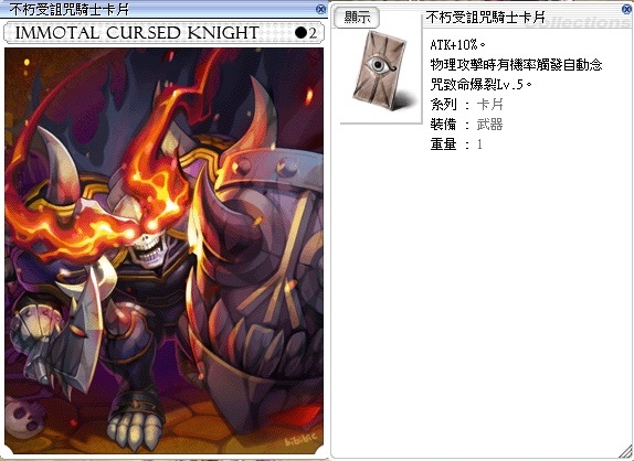 道具 不朽受詛咒騎士卡片(自詠致命爆裂 敏爆自詠致爆盧恩)封印闇●聖殿十字軍 蘭達卡片