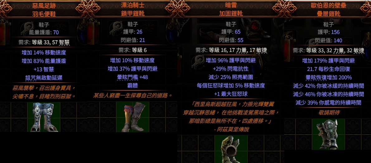 道具 【多裝備賣場、長靴、鞋子】 傳奇PoE2流亡黯道2👌惡風足跡詛咒、漂泊騎士霸體、暗雷狂怒球、歐伯恩的壁壘