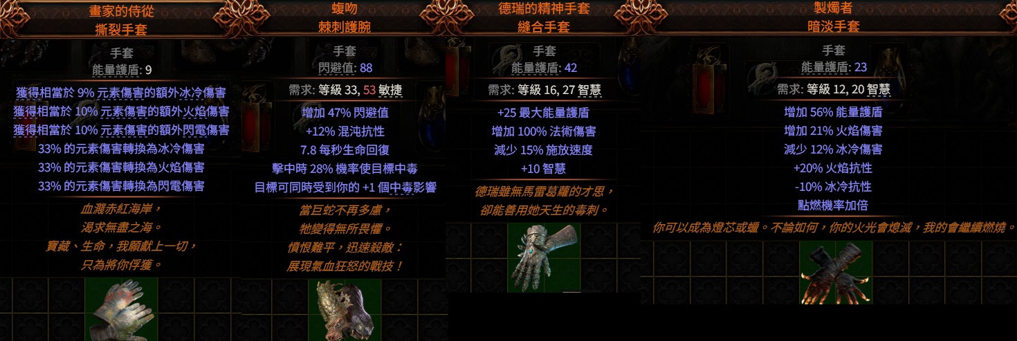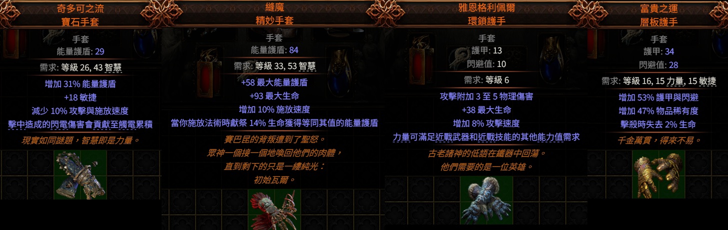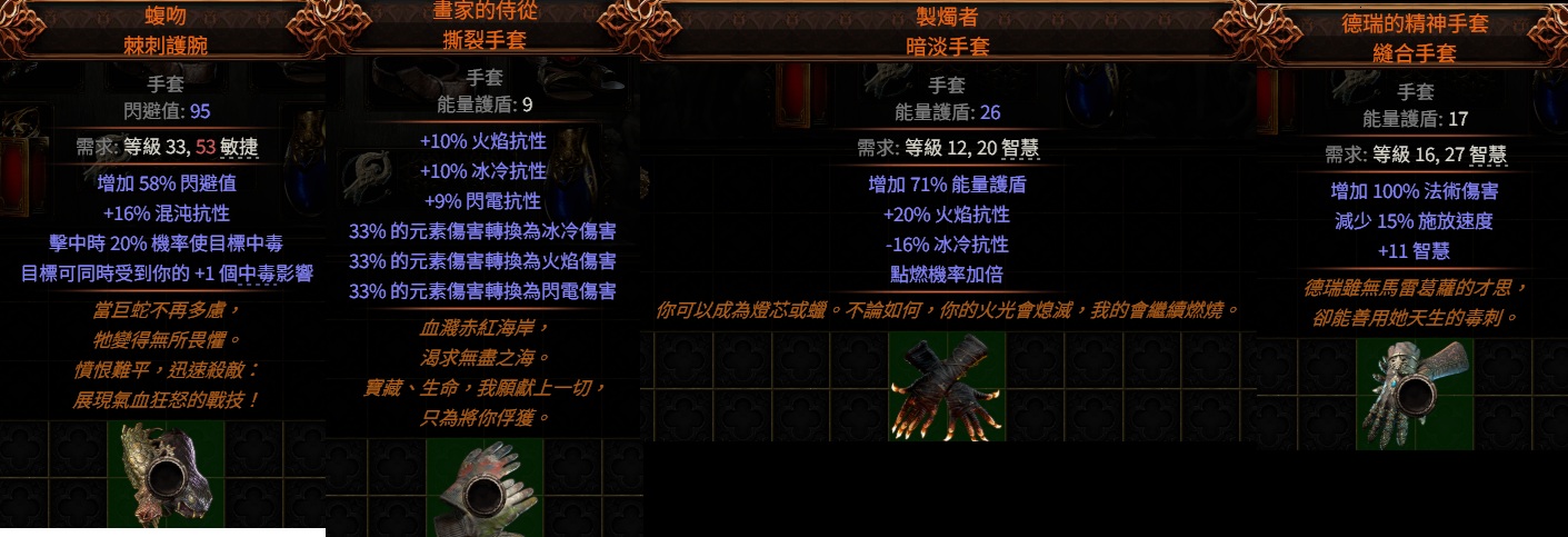 道具 【多裝備賣場、手套、鞋子】 傳奇手套PoE2👌護腕、護手、手套 、腕帶、脛甲、便帽、項鍊、裏手、細杖