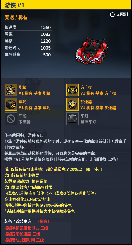 雙線大區--強力起步加速飛寵:神龍鬥士飛寵無限|【無限車輛】黃金騎士V1無限(改裝:啟動三級變形三級最佳化三級 部件:V1稀有基本引擎+V1稀有基本方向盤+V1稀有基本車輪+V1稀有基本加速器+極光紅車膜)|