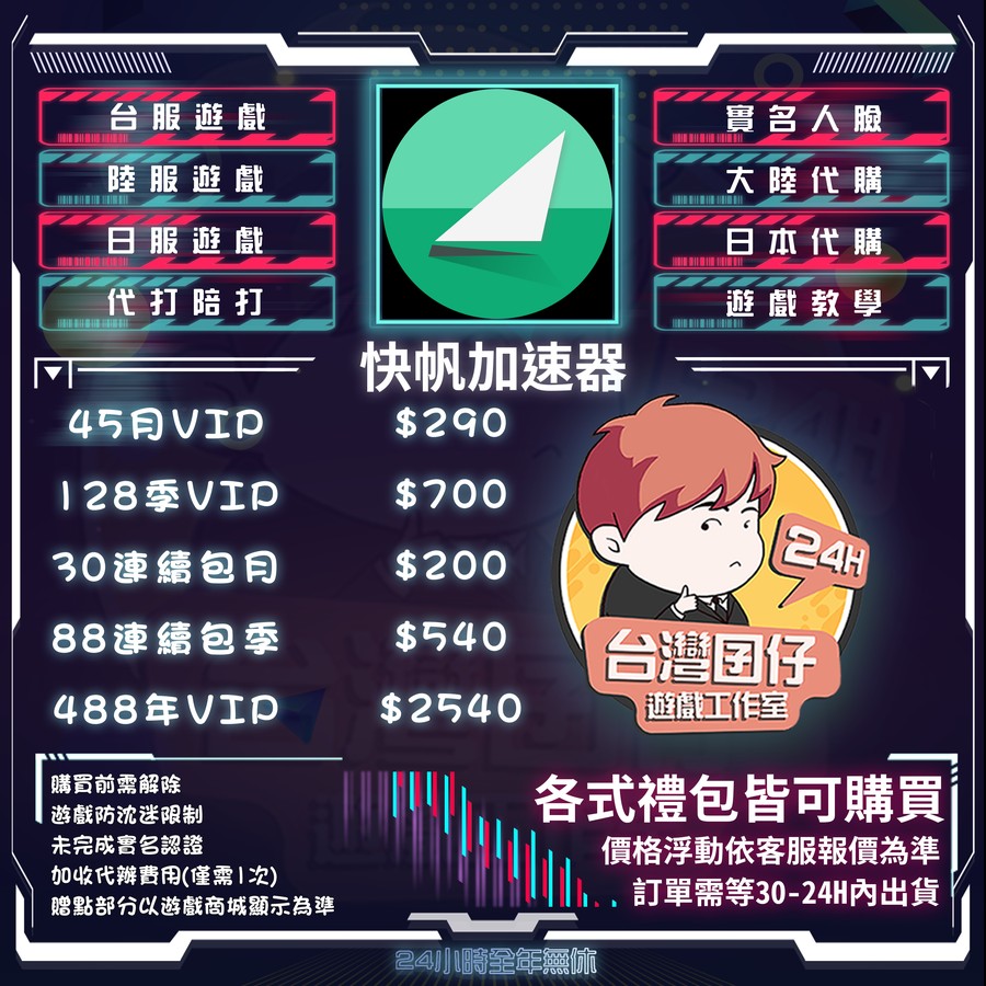 代儲【45月VIP=290元】 🔥快帆加速器陸服🏆24H客服🏆現貨秒出🔥台灣囝仔❤️