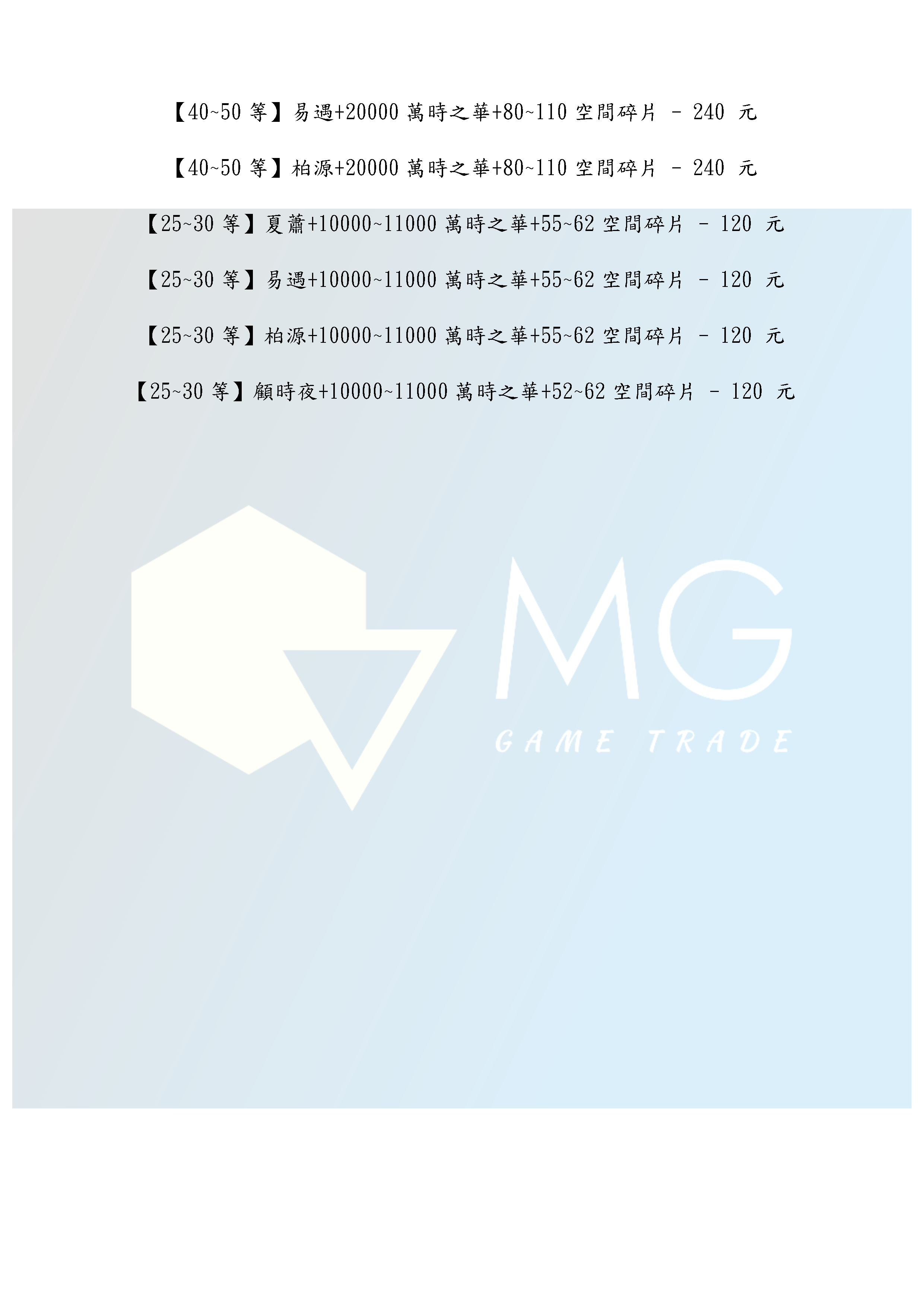 【0等】 【MG數碼】 陸服 多石號 多時之華號 初始號 自抽號 自選號