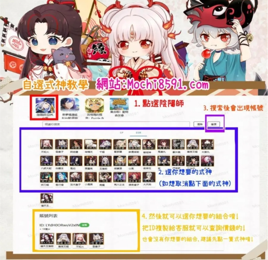 👉老闆原本在台灣8591出售多年陰陽師帳號,因私人理由重新開設帳號重售,最新組合可以小窗查詢~給最優惠的價錢給大家