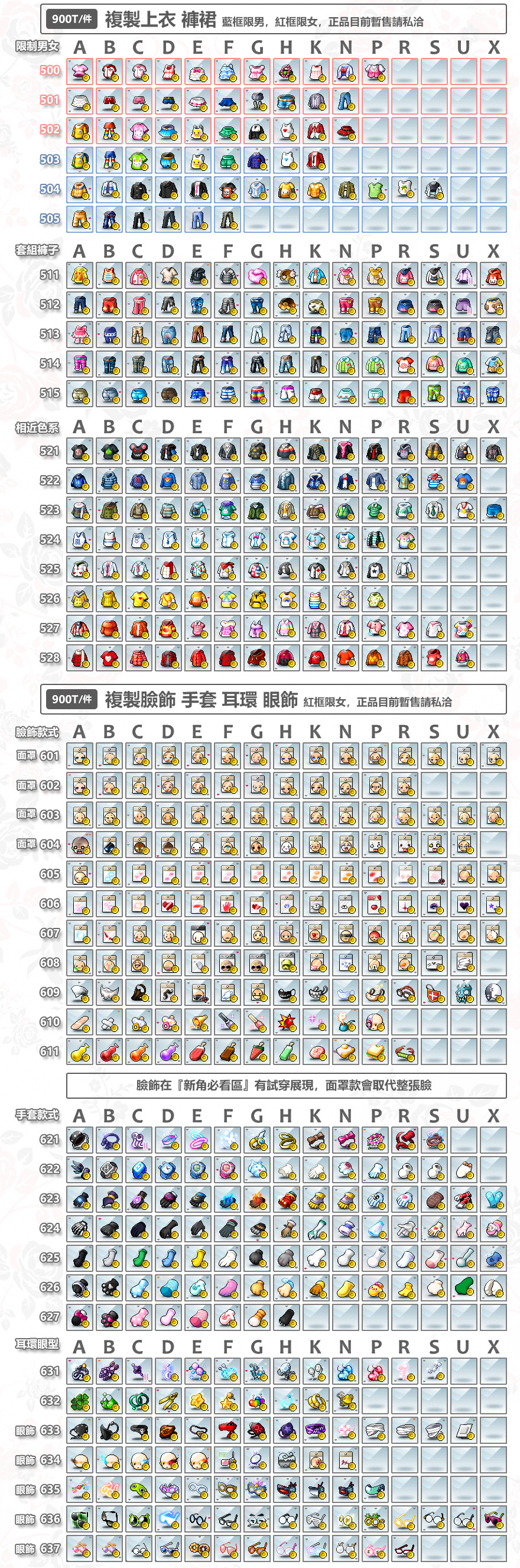 主店位於愛麗西亞 全服可免費幫轉 但需配合等待車子 | 複製品含刀鐵 單件售價:900T 四件優惠價:3400T | 以對話紀錄為準 建議使用小窗詢問 比較不會吃訊息 |