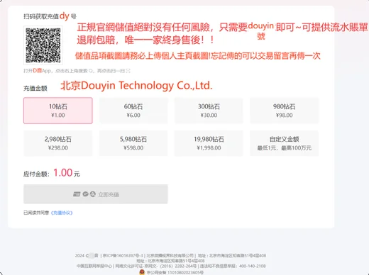 Dy幣儲值請在備註欄填寫Dy號和暱稱,