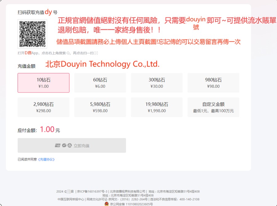 Dy幣儲值請在備註欄填寫Dy號和暱稱,