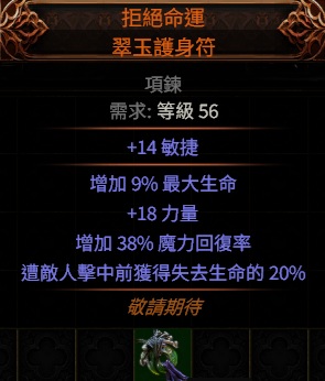道具 【項鏈、項鍊、飾品】 傳奇PoE2流亡黯道2👌拒絕命運.翠玉護身符(魔力回復率/敏捷/力量/生命)