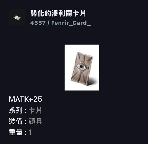 ✨弱化的潘利爾卡片 matk+25