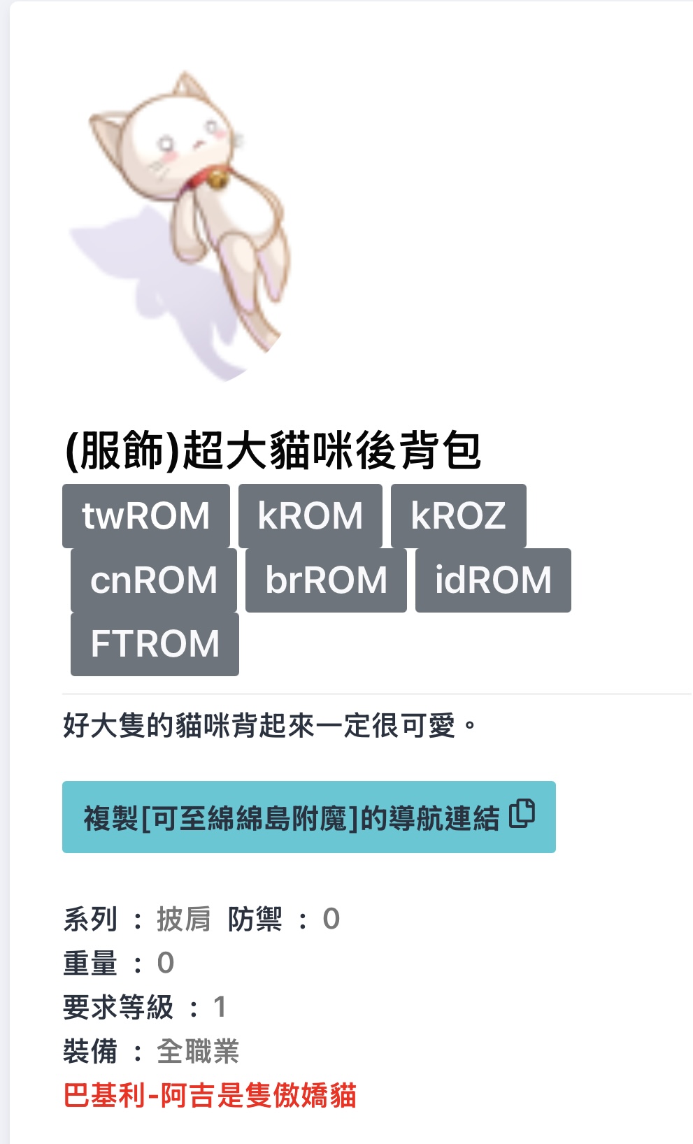 ✨(服飾) 白色 超大貓咪後背包 🤍