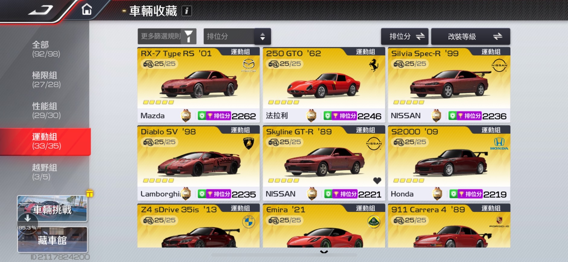 遊戲內排名前段 已儲值快200萬台幣