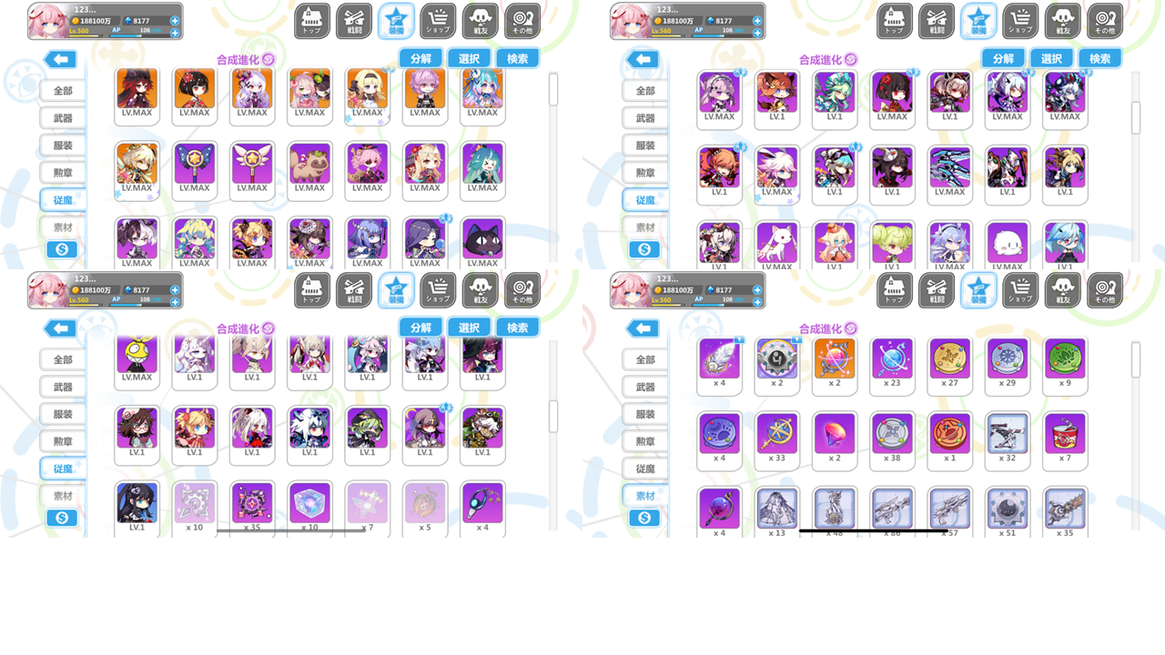 角色全滿 阿庫滿限解 其餘接近滿限解