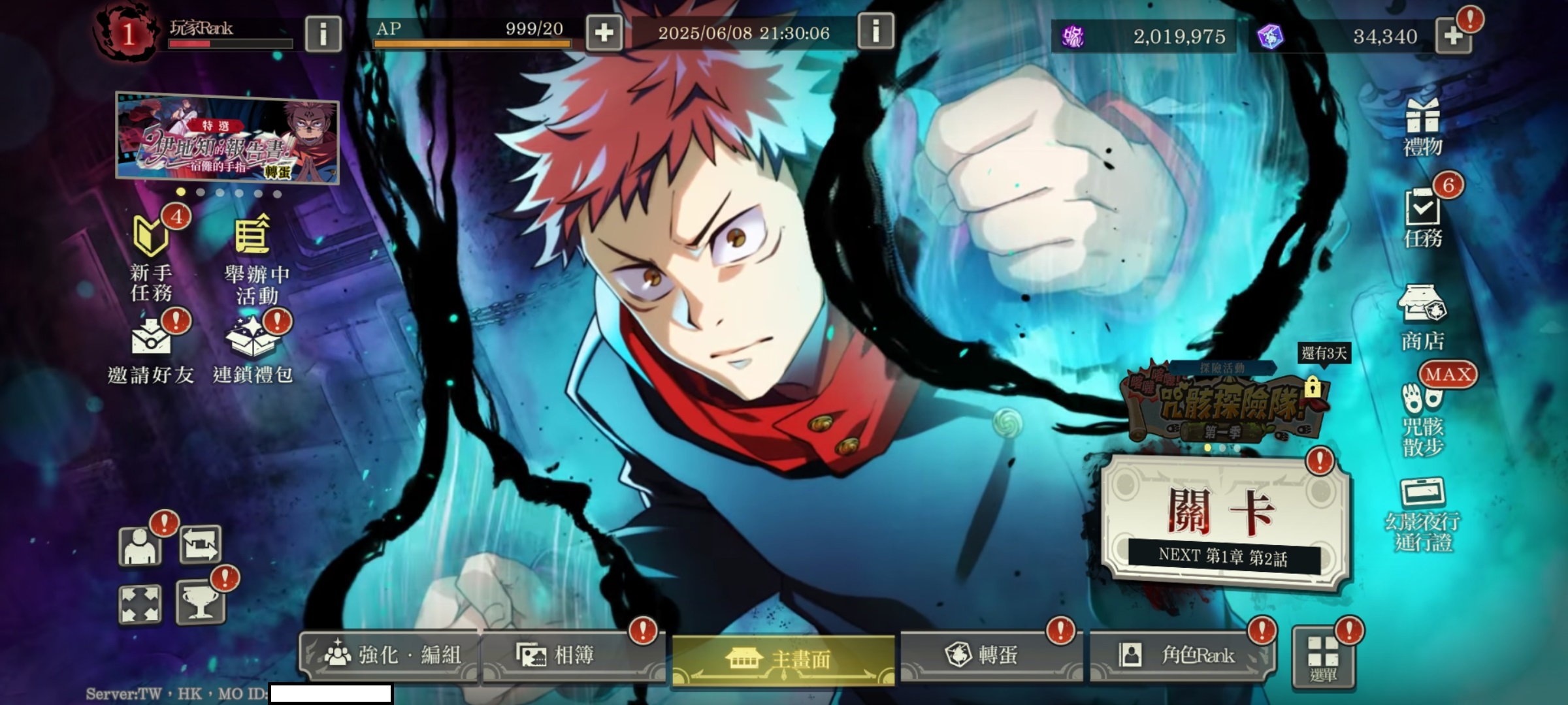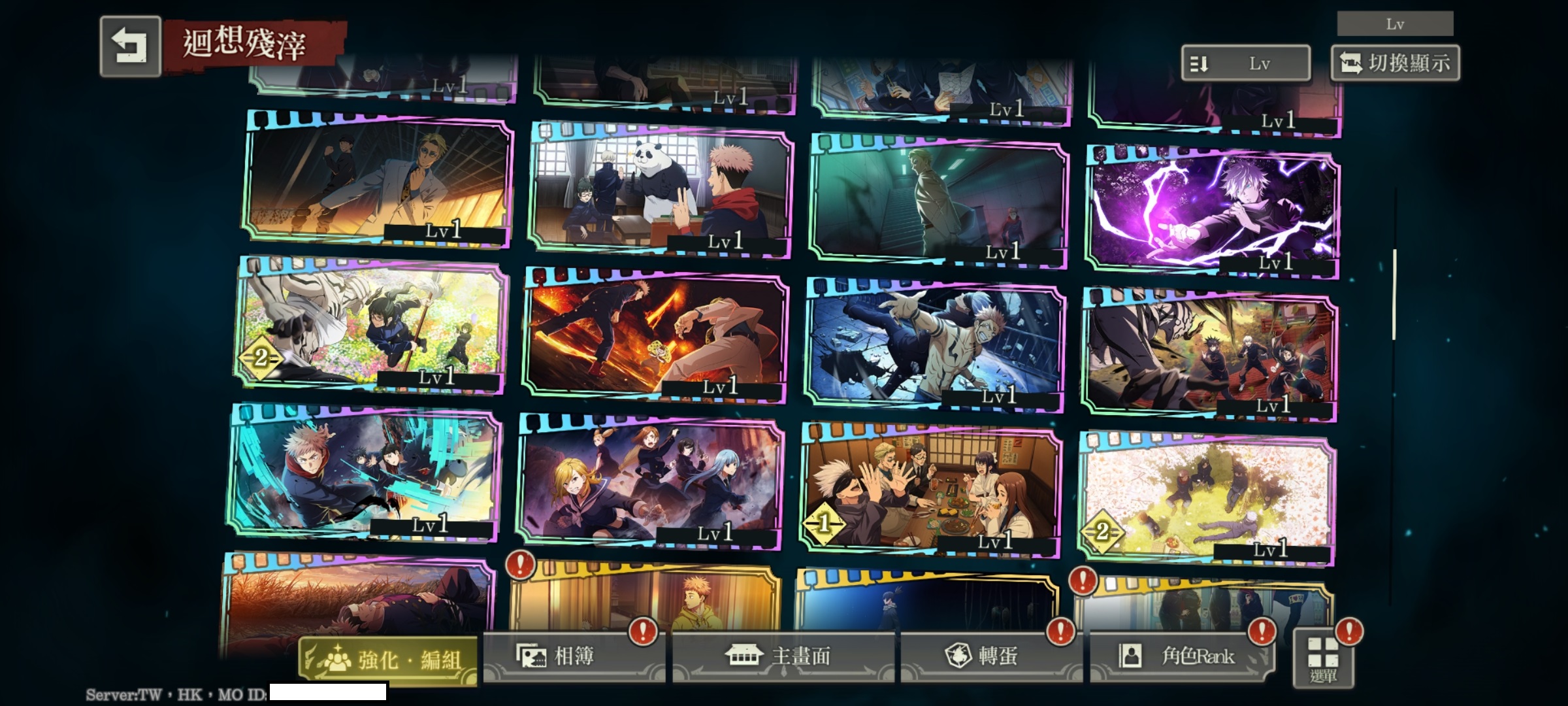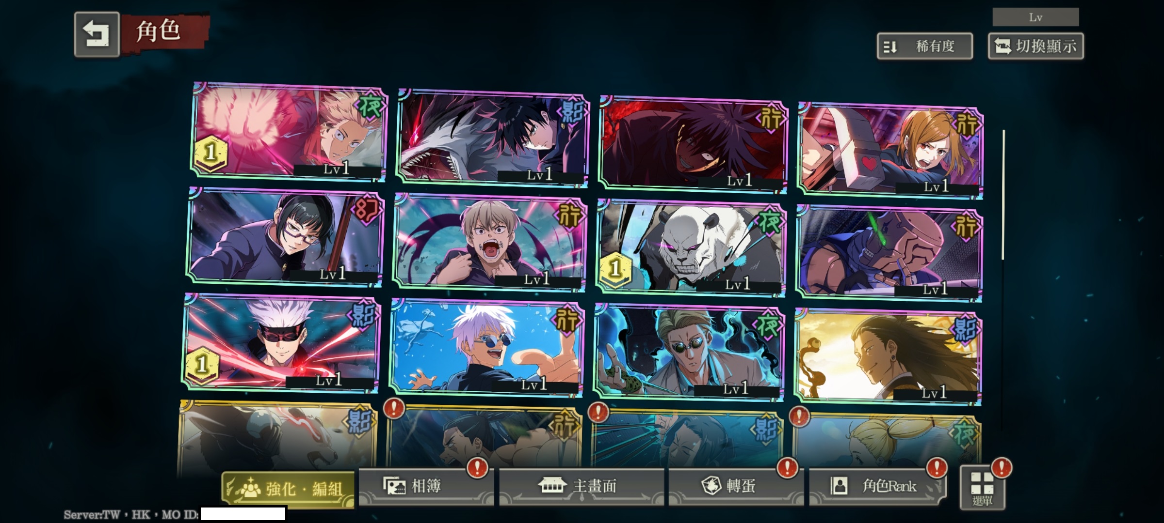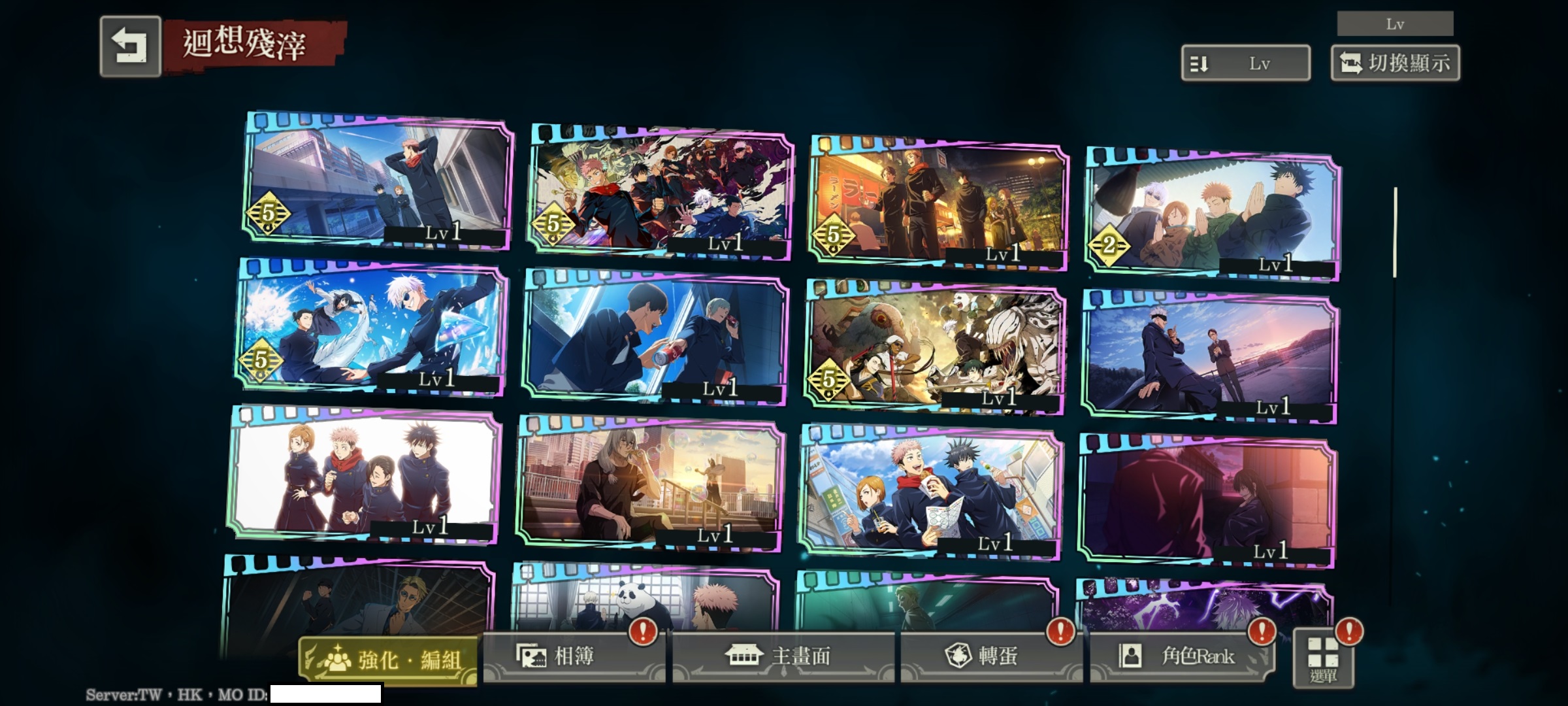 行五條+影五條*2+影夏油傑+行伏黑惠+行機械丸+行釘崎+夜虎杖*2+影伏黑惠+夜七海+夜熊貓*2+行狗卷棘+幻真希+先喝個可樂+大人們的休息時間+可能的青春+邊走邊吃街道巡禮+詛咒與泡泡+你也太慢了吧+我會跟著你,七海先生+買了當地特產回來+任務開始+不合常理+同氣連枝*3+上下一心+强者的嬉戲+冒死抵抗+互相信任+華麗邁進+大人的時間*2+有朝一日的願望*3+無名的青春+自選SSR角色轉蛋券+34030迴珠