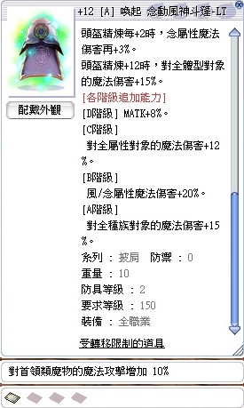 +12[A]念動風神斗篷-LT/喬伊亞/首領增傷10%/念咒/咒2