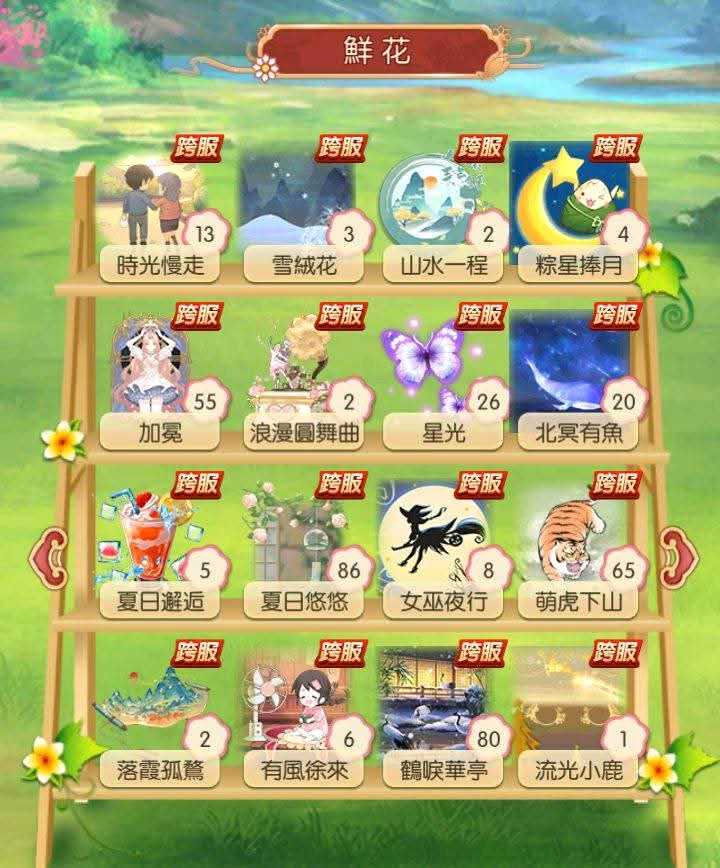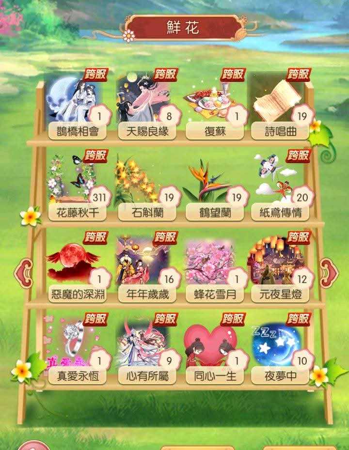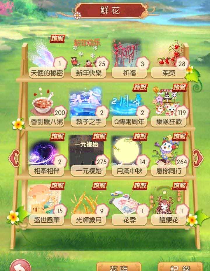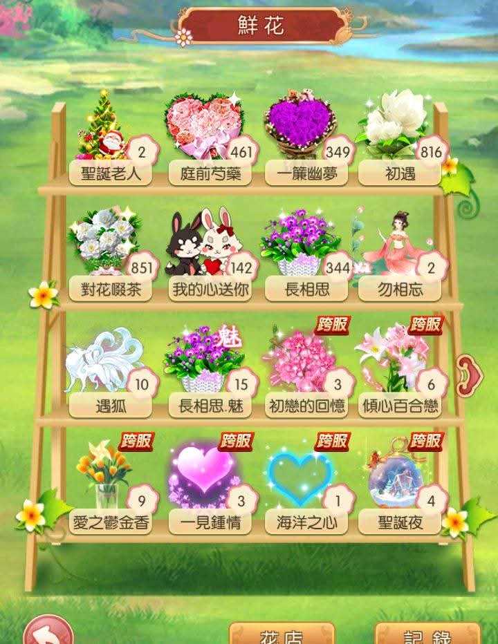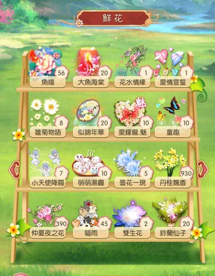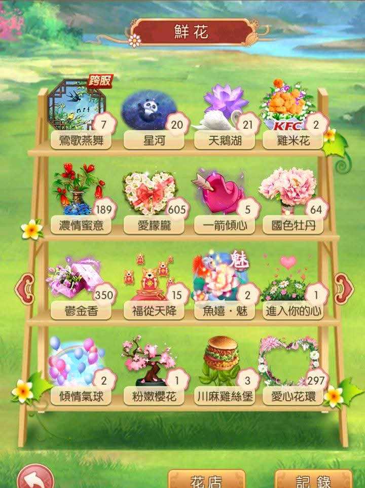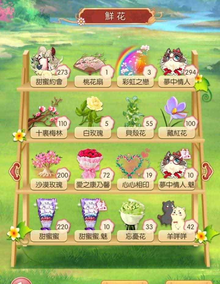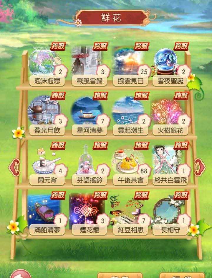 宮鬥力7千1百多萬,元寶1800,存有8頁半的花,花圖2026/03/16更新,4件粉裝,11件紅裝,加贈2個小帳