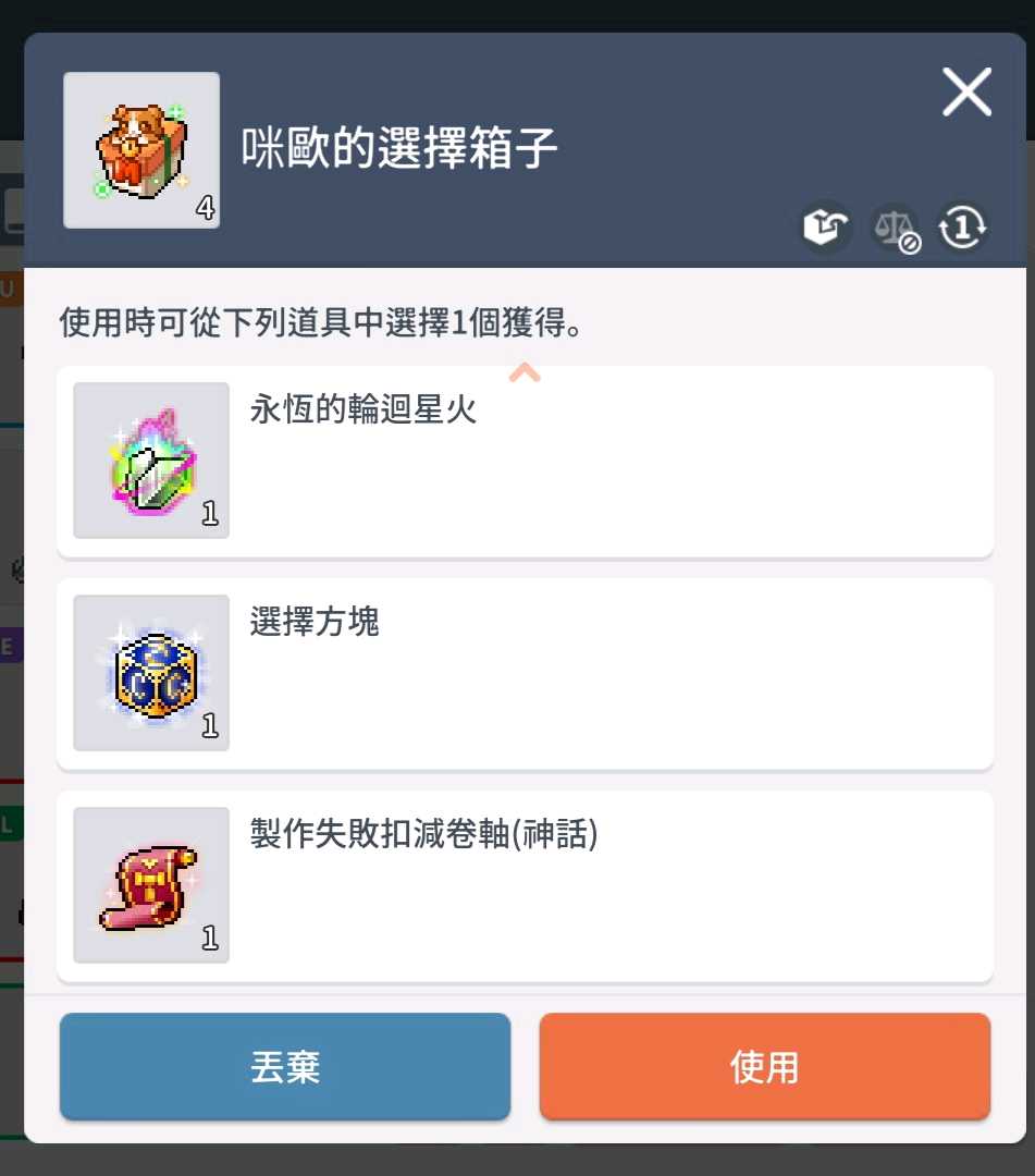 溫迪亞,賣咪歐的選擇箱子