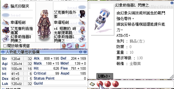 飾品(左):幻象助推器L閃爍之 [1](溜溜猴卡片)、(附魔LUK+9)