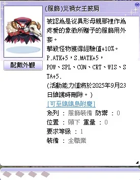 12A階潛能激發冒險帽-LT(獨眼怪卡) +11神話嚮往自由手杖(MATK5%)