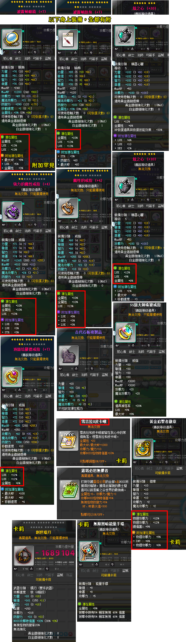 👑附洗好波紋眼,大小魔,心臟,傳說戒指,掉寶裝等等