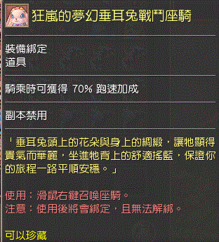 狂嵐的夢幻垂耳兔戰鬥座騎/70%坐騎