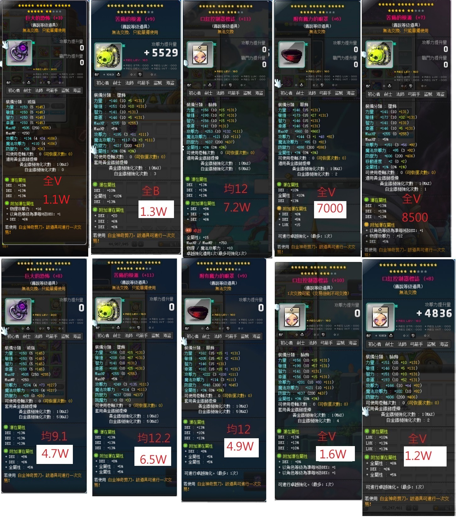 手套7000 22C均8.4白2雙傳主雙爆敏附加雙排