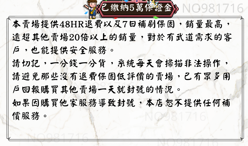 本賣場已繳納五萬保證金