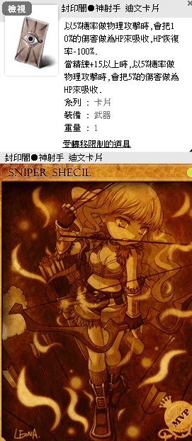 道具 【戒靈】 保字號 封印闇●神射手 迪文卡片 下標前請先小窗確認怕代打沒看到