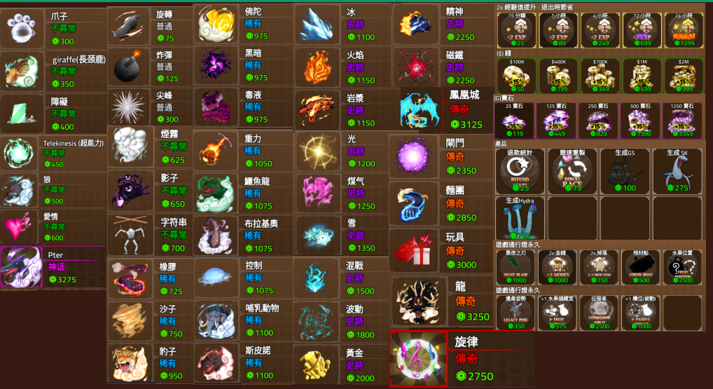 旋轉:75R=80元 炸彈:125R=80元 尖刺:300R=80元