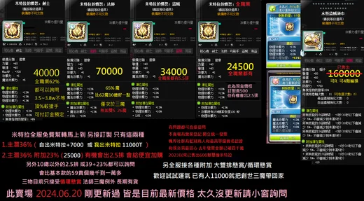 目前米特拉 各職業價格基本上都如下