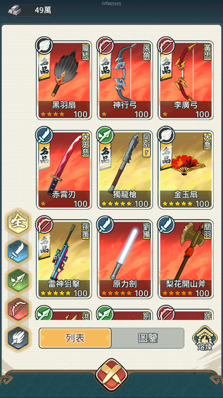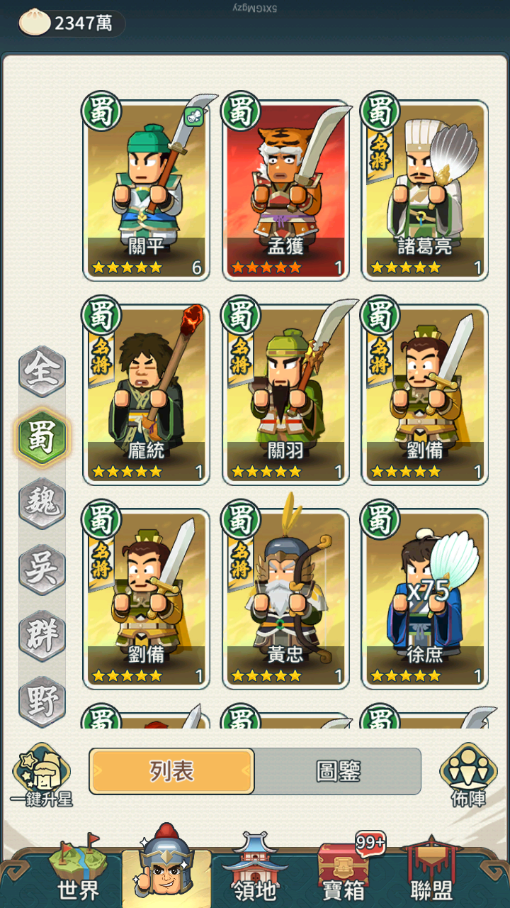 10星:關羽、劉備、張飛、諸葛、黃忠、