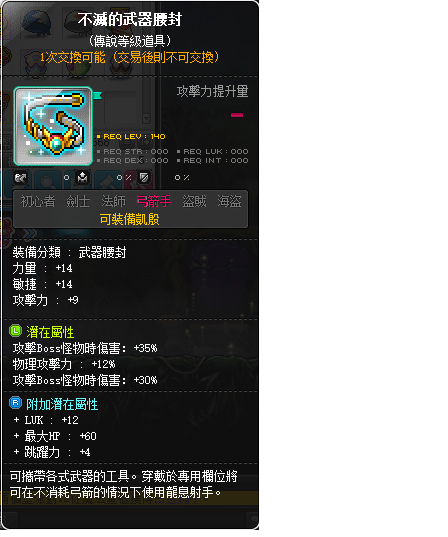 道具 【不滅的武器腰封】 ◤凱殷副武器◢此單為不滅的武器腰封3排傳說65%BOSS12%物攻