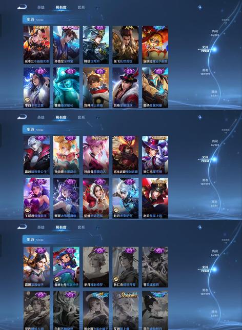 雲纓-幻光神槍,明世隱-景韶洛都,大喬-貓狗日記,趙懷真-器靈·浮夢爐,呂布-怒海麟威,瀾-願照·九州拓,弈星-萬物之道,貂蟬-聖誕戀歌,姜子牙-星夢巡禮,劉禪-紳士熊喵,馬超-訪茗客,孫臏-茶境仙,西施-雪境奇遇,牛魔-星界戰將,典韋-鐵骨偃魂,影-魅影綺裳,太乙真人-謐流熔爐,蒼-蒼林狼騎,李元芳-逐浪之夏,蒙恬-蔚藍守將,沈夢溪-月團寄思,白起-星夜王子,百里守約-百相守夢,老夫子-百相守夢,雅典娜-黎明之約,馬可波羅-怪盜基德,干將莫邪-霧都夜雨,桑啟-鳴野蒿,太乙真人-勁辣紅鍋,李白-敏銳之力,甄姬-遊園驚夢,明世隱-占星師,趙雲-未來紀元,東皇太一-噬滅天穹,金蟬-前塵,大司命-東方月初,曹操-超能戰警,諸葛亮-掌控之力,廉頗-功夫炙烤,趙雲-百木心槍,米萊狄-精準探案法,狂鐵-命運角鬥場,姜子牙-天穹之誓,曹操-決勝大滿貫,馬可波羅-逐夢之星,大司命-暗都幽影,張良-一千零一夜,劉邦-劍破天穹,張良-繽紛繪卷,嫦娥-露花倒影,沈夢溪-龍舞盛年,李元芳-特種部隊,鬼谷子-天穹祈燈,花木蘭-瑞麟志,盤古-創世神祝,狄仁傑-錦衣衛,張良-古海尋蹤,蘇烈-愛與和平,程咬金-無雙福將,司空震-啟蟄,弈星-踏雪尋梅,趙雲-忍·炎影,百里玄策-白虎志,阿古朵-江河有靈,牛魔-西部大鏢客,甄姬-冰雪圓舞曲,孫臏-天使之翼,桑啟-畫中遊,夏侯惇-戰爭騎士,李元芳-妄想特派,暃-碧珀緋影,鏡-熾陽神光,沈夢溪-匿光破解者,蘭陵王-暗隱獵獸者,西施-玲瓏珍味,魯班大師-探海日誌,老夫子-潮流仙人,高漸離-金屬狂潮,公孫離-記憶之芯,馬可波羅-激情綠茵,貂蟬-貓影幻舞,姬小滿-零食大作戰,宮本武藏-鬼劍武藏,公孫離-花間舞,楊戩-埃及法老,瀾-電玩·雷克斯,裴擒虎-擒濤扼浪,曹操-幽靈船長,豬八戒-潮玩探月行,花木蘭-燃星之曲,東皇太一-東海龍王,鬼谷子-五穀豐年,蘇烈-堅韌之力,李元芳-雲中旅人,達摩-大發明家,安琪拉-玩偶對對碰,沈夢溪-鯊炮海盜貓,狂鐵-特工戰影,曜-李逍遙,沈夢溪-大漠名商,瀾-賞金獵手,蔡文姬-薔薇王座,貂蟬-異域舞娘,米萊狄-契約魔法,雅典娜-戰爭女神,劉禪-秘密基地,劉禪-喚靈魔甲,孫尚香-薔薇戀人,鬼谷子-幻樂之宴,蘭陵王-金庭之子,李白-範海辛,瑤-森,程咬金-愛與正義,盾山-極冰防禦線,孫尚香-水果甜心,達摩-沙漠行僧,李信-一念神魔,姜子牙-時尚教父,莊周-高山流水,黃忠-芝加哥教父,鬼谷子-阿摩司公爵,百里守約-朱雀志,楊玉環-遇見飛天,花木蘭-劍舞者,雲纓-赤焰之纓,花木蘭-冠軍飛將,孫悟空-孫行者,曜-歸虛夢演,蘇烈-千軍破陣,老夫子-功夫老勺,扁鵲-化身博士,花木蘭-兔女郎,魯班大師-乓乓大師,鍾馗-驅儺正儀,李白-鳴劍·曳影,哪吒-三太子,程咬金-演武奪籌,司馬懿-魘語軍師,元歌-午夜歌劇院,百里玄策-熱力迴旋,莊周-奇妙博物學,蒼-維京掠奪者,魯班七號-電玩小子,王昭君-偶像歌手,哪吒-次元突破,王昭君-幻想奇妙夜,沈夢溪-星空之諾,元歌-雲間偶戲,亞瑟-潮玩騎士王,鏡-冰刃幻境,露娜-瓷語鑑心,張飛-亂世虎臣,孫悟空-零號·赤焰,趙雲-白執事,羋月-白晶晶,蒙犽-歸虛夢演,狄仁傑-萬華元夜,虞姬-啟明星使,瀾-孤獵,雲中君-纖雲弄巧,關羽-龍騰萬里,裴擒虎-李小龍,魯班大師-歸虛夢演,百里玄策-原初追逐者,姜子牙-熾熱元素使,百里守約-絕影神槍,鬼谷子-原初探秘者,亞瑟-心靈戰警,白起-白色死神,馬超-神威,狄仁傑-鷹眼統帥,老夫子-醍醐杖,墨子-金屬風暴,盾山-圓桌騎士,孫悟空-至尊寶,明世隱-疑決卦,馬超-倖存者,沈夢溪-棒球奇才,劉備-紐約教父,張良-黃金白羊座,夢奇-美夢成真,弈星-混沌棋,劉禪-英喵野望,張飛-五福同心,李信-灼熱之刃,雅典娜-冰冠公主,韓信-白龍吟,阿軻-節奏熱浪,干將莫邪-久勝戰神,曹操-死神來了,魯班七號-福祿兄弟,小喬-萬聖前夜,孫策-海之征途,羋月-紅桃皇后,達摩-拳王,蘭陵王-馴魔獵人,程咬金-星際陸戰隊,諸葛亮-武陵仙君,孫悟空-地獄火,伽羅-箭羽風息,明世隱-虹雲星官,呂布-聖誕狂歡,上官婉兒-梁祝,安琪拉-魔法小廚娘,夏侯惇-朔風刀,嬴政-暗夜貴公子,宮本武藏-地獄之眼,鍾無豔-海灘麗影,周瑜-赤蓮之焰,小喬-繽紛獨角獸,露娜-哥特玫瑰,孫尚香-末日機甲,百里守約-特工魅影,西施-歸虛夢演,公孫離-無限星賞官,達摩-黃金獅子座,伽羅-花見巫女,諸葛亮-黃金分割率,虞姬-雲霓雀翎,李白-千年之狐,露娜-緋紅之刃,雅典娜-神奇女俠,孫尚香-沉穩之力,魯班七號-獅舞東方,貂蟬-仲夏夜之夢,鍾馗-神蹟守衛,孫臏-歸虛夢演,甄姬-花好人間,妲己-少女阿狸,韓信-街頭霸王,韓信-教廷特使,狄仁傑-魔術師,盾山-御鑾,后羿-黃金射手座,鎧-曙光守護者,劉備-漢昭烈帝,呂布-野性能量,百里玄策-威尼斯狂歡,狄仁傑-陰陽師,裴擒虎-天狼狩獵者,典韋-藍色畫面警告,上官婉兒-修竹墨客,露娜-紫霞仙子,宮本武藏-永珍初新,諸葛亮-星航指揮官,小喬-丁香結,大喬-守護之力,牛魔-御旌,鍾馗-地府判官,女媧-朔望之暉,趙雲-皇家上將,花木蘭-水晶獵龍者,孫悟空-西部大鏢客,夏侯惇-乘風破浪,魯班七號-木偶奇遇記,米萊狄-御霄,項羽-海灘派對,干將莫邪-第七人偶,呂布-獵獸之王,露娜-一生所愛,馬超-無雙飛將,典韋-黃金武士,楊玉環-霓裳曲,桑啟-海鹽詩旅,李元芳-匿光偵查者,亞連-破局者,海月-王牌新星,阿古朵-熊喵少女,蒙恬-秩序獵龍將,未來機甲