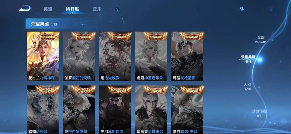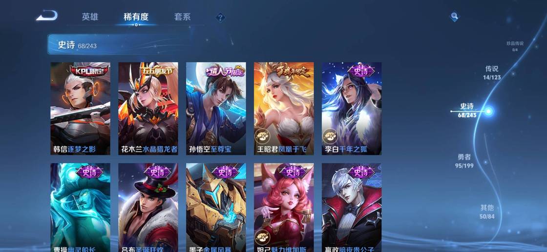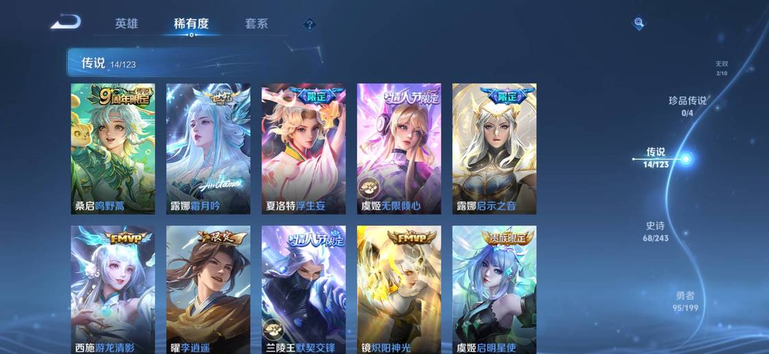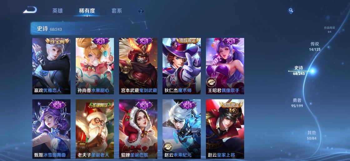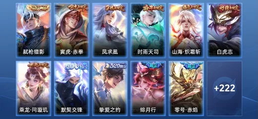 張良-黃金白羊座,明世隱-景韶洛都,楊戩-埃及法老,西施-雪境奇遇,甄姬-雪境奇遇,嬴政-暗夜貴公子,典韋-鐵骨偃魂,影-魅影綺裳,李元芳-逐浪之夏,桑啟-鳴野蒿,太乙真人-謐流熔爐,諸葛亮-掌控之力,蒼-蒼林狼騎,牛魔-星界戰將,莊周-高山流水,孫臏-天使之翼,亞連-破空之劍,魯班七號-電玩小子,盤古-敬我三分,孫悟空-神蹟守衛,公孫離-離恨煙,弈星-踏雪尋梅,諸葛亮-黃金分割率,姜子牙-天穹之誓,李白-敏銳之力,周瑜-熔金海岸,雲中君-纖雲弄巧,劉備-潮玩造夢師,劉邦-劍破天穹,桑啟-畫中遊,姬小滿-妄想食味,海諾-時空諜影,鬼谷子-天穹祈燈,蒙恬-榮光聖徽,后羿-完美運算,露娜-霜月吟,蒙犽-百解令,蒙恬-蔚藍守將,甄姬-冰雪圓舞曲,鎧-曙光守護者,暃-碧珀緋影,阿古朵-江河有靈,盾山-圓桌騎士,魯班七號-木偶奇遇記,墨子-金屬風暴,亞連-破局者,韓信-街頭霸王,海月-王牌新星,張良-古海尋蹤,魯班大師-探海日誌,劉備-萬事如意,萊西奧-西部遊俠,高漸離-死亡搖滾,虞姬-啟明星使,裴擒虎-擒濤扼浪,牛魔-西部大鏢客,夏洛特-浮生妄,甄姬-花好人間,虞姬-無限傾心,蒙犽-歸虛夢演,海月-幻泉霧影,桑啟-海鹽詩旅,夢奇-頑趣,元歌-無心,呂布-聖誕狂歡,鬼谷子-阿摩司公爵,鬼谷子-五穀豐年,劉禪-天才門將,大喬-守護之力,李元芳-雲中旅人,孫尚香-水果甜心,花木蘭-九霄神輝,花木蘭-兔女郎,白起-星夜王子,沈夢溪-大漠名商,宮本武藏-鬼劍武藏,蘭陵王-金庭之子,露娜-啟示之音,司空震-啟蟄,瀾-賞金獵手,曹操-幽靈船長,關羽-龍騰萬里,哪吒-次元突破,孫尚香-沉穩之力,小喬-丁香結,趙雲-白執事,楊玉環-霓裳曲,楊玉環-寅虎·心曲,嬴政-優雅戀人,雅典娜-黎明之約,達摩-沙漠行僧,花木蘭-青春決賽季,瑤-森,蘇烈-愛與和平,嫦娥-拒霜思,金蟬-前塵,后羿-聖弓遊俠,干將莫邪-真愛魔法,司馬懿-暗淵魔法,東皇太一-東海龍王,蒼-維京掠奪者,豬八戒-豬悟能,妲己-紫羅蘭之誓,孫悟空-孫行者,蔡文姬-薔薇王座,盤古-創世神祝,蘇烈-千軍破陣,西施-游龍清影,典韋-鐵甲之心,女媧-尼羅河女神,姜子牙-熾熱元素使,老夫子-航海奇遇記,周瑜-海軍大將,公孫離-蜜橘之夏,李元芳-特種部隊,蒙恬-秩序獵龍將,曜-李逍遙,魯班大師-乓乓大師,太乙真人-華麗搖滾,瀾-孤獵,沈夢溪-鯊炮海盜貓,百里守約-絕影神槍,墨子-神蹟守衛,鍾馗-驅儺正儀,伽羅-天狼溯光者,不知火舞-魅語,孫策-海之征途,雲纓-赤焰之纓,哪吒-三太子,趙雲-忍·炎影,李信-灼熱之刃,宮本武藏-永珍初新,馬可波羅-逐夢之星,程咬金-演武奪籌,蘭陵王-默契交鋒,亞瑟-潮玩騎士王,元歌-雲間偶戲,百里玄策-原初追逐者,宮本武藏-未來紀元,王昭君-偶像歌手,干將莫邪-冰霜戀舞曲,花木蘭-默契交鋒,楊戩-次元傲視,鏡-熾陽神光,狄仁傑-萬華元夜,鬼谷子-原初探秘者,裴擒虎-李小龍,鎧-青龍志,公孫離-無限星賞官,曜-歸虛夢演,百里守約-特工魅影,典韋-黃金武士,呂布-天魔繚亂,橘右京-修羅,小喬-萬聖前夜,老夫子-醍醐杖,上官婉兒-天狼繪夢者,馬超-神威,張良-一千零一夜,裴擒虎-街頭旋風,趙雲-未來紀元,娜可露露-晚螢,沈夢溪-棒球奇才,明世隱-疑決卦,鏡-冰刃幻境,夢奇-美夢成真,雲中君-荷魯斯之眼,馬超-倖存者,弈星-混沌棋,夏侯惇-朔風刀,諸葛亮-武陵仙君,達摩-拳王,上官婉兒-梁祝,狄仁傑-魔術師,李白-千年之狐,張飛-五福同心,貂蟬-聖誕戀歌,上官婉兒-修竹墨客,盾山-御鑾,狄仁傑-鷹眼統帥,司馬懿-魘語軍師,李白-範海辛,蘭陵王-暗隱獵獸者,牛魔-御旌,米萊狄-御霄,狂鐵-御獅,元歌-午夜歌劇院,鬼谷子-幻樂之宴,韓信-逐夢之影,典韋-窮奇,老夫子-功夫老勺,羋月-重明,鎧-龍域領主,白起-猙,貂蟬-異域舞娘,干將莫邪-第七人偶,墨子-進擊墨子號,花木蘭-水晶獵龍者,鍾馗-地府判官,虞姬-凱爾特女王,扁鵲-化身博士,虞姬-加勒比小姐,趙雲-皇家上將,黃忠-芝加哥教父,露娜-紫霞仙子,馬可波羅-激情綠茵,孫悟空-至尊寶,諸葛亮-星航指揮官,項羽-海灘派對,王昭君-鳳凰于飛,扁鵲-鍊金王,韓信-教廷特使,狄仁傑-陰陽師,劉邦-聖殿之光,安琪拉-玩偶對對碰,孫尚香-末日機甲,孫臏-妖精王,阿軻-致命風華,鍾無豔-王者之錘,雅典娜-戰爭女神,劉備-紐約教父,莊周-蜃樓王,亞瑟-獅心王,妲己-魅力維加斯,老夫子-聖誕老人,妲己-少女阿狸,亞瑟-死亡騎士,鍾無豔-海灘麗影,曹操-超能戰警