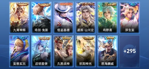 虞姬-啟明星使,夏洛特-浮生妄,虞姬-無限傾心,露娜-啟示之音,曜-李逍遙,蘭陵王-默契交鋒,呂布-天魔繚亂,諸葛亮-武陵仙君
