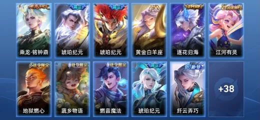 百里玄策-原初追逐者,鏡-青焰無極,高漸離-燃音魔法,伽羅-琥珀紀元,蒙恬-榮光聖徽,周瑜-雪夜綺願,嫦娥-拒霜思,蒙犽-百解令,司空震-地獄燃心,阿古朵-江河有靈,扁鵲-奇幻香蹤,馬可波羅-山海·玄木吟,夢奇-頑趣,暃-星界遊俠,鍾無豔-超時空戰士,元歌-無心,雅典娜-黎明之約,鬼谷子-五穀豐年,狂鐵-電玩高手,黃忠-火炮紳士,狄仁傑-魔術師,韓信-傲雪梅槍,老夫子-航海奇遇記,趙雲-皇家上將,元歌-雲間偶戲,雲中君-纖雲弄巧,裴擒虎-李小龍,孫悟空-大聖娶親