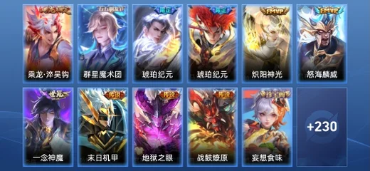大喬-貓狗日記,雅典娜-戰爭女神,阿軻-愛心護理,姜子牙-星夢巡禮,魯班七號-木偶奇遇記,韓信-街頭霸王,盤古-敬我三分,姜子牙-天穹之誓,馬超-倖存者,貂蟬-聖誕戀歌,程咬金-星際陸戰隊,露娜-紫霞仙子,宮本武藏-鬼劍武藏,百里玄策-原初追逐者,鏡-青焰無極,劉邦-劍破天穹,項羽-蒼威無極,嬴政-搖滾巨星,白起-星夜王子,雲纓-赤焰之纓,沈夢溪-龍舞盛年,鍾無豔-春野之旅,盤古-創世神祝,小喬-青蛇,王昭君-偶像歌手,高漸離-燃音魔法,妲己-靈卜魔法,亞瑟-心靈戰警,廉頗-功夫炙烤,伽羅-琥珀紀元,李信-灼熱之刃,太乙真人-勁辣紅鍋,嫦娥-漠中幻影,伽羅-花見巫女,妲己-女僕咖啡,鬼谷子-天穹祈燈,蒙恬-榮光聖徽,周瑜-雪夜綺願,馬可波羅-激情綠茵,程咬金-暖冬絮語,后羿-完美運算,嫦娥-拒霜思,蒙犽-百解令,呂布-聖誕狂歡,司空震-地獄燃心,甄姬-冰雪圓舞曲,艾琳-流音漫舞,孫臏-天使之翼,曹操-決勝大滿貫,干將莫邪-胡桃夾子,阿古朵-江河有靈,張良-古海尋蹤,魯班大師-探海日誌,姬小滿-零食大作戰,扁鵲-奇幻香蹤,魯班七號-福祿兄弟,楊戩-潮玩騎兵,老夫子-潮流仙人,裴擒虎-擒濤扼浪,百里玄策-威尼斯狂歡,大喬-守護之力,趙懷真-太極少年,諸葛亮-掌控之力,曜-雲鷹飛將,蔡文姬-薔薇王座,太乙真人-圓桌騎士,李元芳-特種部隊,孫臏-未來旅行,白起-樂園追獵者,蒼-維京掠奪者,馬可波羅-山海·玄木吟,夢奇-頑趣,花木蘭-九霄神輝,甄姬-花好人間,暃-星界遊俠,裴擒虎-街頭旋風,明世隱-占星師,上官婉兒-修竹墨客,百里守約-絕影神槍,蘇烈-愛與和平,安琪拉-心靈駭客,李白-千年之狐,白起-白色死神,夢奇-美夢成真,劉邦-聖殿之光,牛魔-牛運亨通,達摩-大發明家,豬八戒-潮玩探月行,司空震-啟蟄,周瑜-海軍大將,鏡-熾陽神光,王昭君-精靈公主,鍾無豔-生化警戒,海月-幻泉霧影,桑啟-海鹽詩旅,鎧-龍域領主,嫦娥-暖冬·兔眠,呂布-怒海麟威,姜子牙-熾熱元素使,蘭陵王-暗隱獵獸者,張良-繽紛繪卷,宮本武藏-未來紀元,鍾無豔-超時空戰士,甄姬-落雪蘭心,元歌-無心,明世隱-虹雲星官,雅典娜-黎明之約,關羽-龍騰萬里,劉邦-德古拉伯爵,鬼谷子-五穀豐年,鬼谷子-阿摩司公爵,孫臏-歸虛夢演,沈夢溪-鯊炮海盜貓,關羽-天啟騎士,李元芳-雲中旅人,鏡-冰刃幻境,蒙犽-歸虛夢演,貂蟬-貓影幻舞,諸葛亮-黃金分割率,王昭君-幻想奇妙夜,狂鐵-電玩高手,王昭君-午後時光,桑啟-畫中遊,鬼谷子-幻樂之宴,蒙恬-蔚藍守將,羋月-紅桃皇后,瀾-賞金獵手,狂鐵-特工戰影,墨子-進擊墨子號,曜-歸虛夢演,沈夢溪-大漠名商,高漸離-天秀·音浪,公孫離-花間舞,米萊狄-契約魔法,劉禪-喚靈魔甲,李信-一念神魔,蘭陵王-金庭之子,高漸離-玩趣惡龍,干將莫邪-第七人偶,劉備-紐約教父,貂蟬-異域舞娘,黃忠-火炮紳士,劉禪-英喵野望,狄仁傑-魔術師,孫策-末日機甲,呂布-野性能量,孫策-海之征途,李元芳-逐浪之夏,孫尚香-水果甜心,姜子牙-時尚教父,程咬金-無雙福將,宮本武藏-永珍初新,瀾-孤獵,程咬金-功夫廚神,羋月-幻夜卜夢,韓信-傲雪梅槍,元歌-午夜歌劇院,達摩-沙漠行僧,蘇烈-千軍破陣,張良-一千零一夜,弈星-踏雪尋梅,宮本武藏-霸王丸,廉頗-地獄巖魂,老夫子-航海奇遇記,花木蘭-兔女郎,墨子-神蹟守衛,哪吒-次元突破,魯班大師-乓乓大師,鍾馗-驅儺正儀,蘇烈-堅韌之力,老夫子-功夫老勺,狄仁傑-超時空戰士,莊周-奇妙博物學,程咬金-演武奪籌,趙雲-皇家上將,孫尚香-時之戀人,元歌-雲間偶戲,亞瑟-潮玩騎士王,曹操-幽靈船長,劉備-萬事如意,張飛-亂世虎臣,楊戩-次元傲視,百里守約-特工魅影,劉禪-秘密基地,狄仁傑-萬華元夜,雲中君-纖雲弄巧,鬼谷子-原初探秘者,裴擒虎-李小龍,瑤-森,狄仁傑-鷹眼統帥,典韋-黃金武士,老夫子-醍醐杖,盾山-圓桌騎士,趙雲-忍·炎影,鍾無豔-海灘麗影,明世隱-疑決卦,哪吒-三太子,妲己-少女阿狸,項羽-帝國元帥,鍾馗-地府判官,魯班七號-黑桃隊長,弈星-混沌棋,黃忠-芝加哥教父,夏侯惇-朔風刀,項羽-海灘派對,達摩-拳王,蘭陵王-隱刃,孫悟空-大聖娶親,扁鵲-化身博士,后羿-精靈王,盾山-御鑾,韓信-教廷特使,夏侯惇-戰爭騎士,牛魔-御旌,李白-範海辛,狄仁傑-陰陽師,妲己-魅力維加斯,米萊狄-御霄,諸葛亮-星航指揮官,狂鐵-御獅,亞瑟-死亡騎士