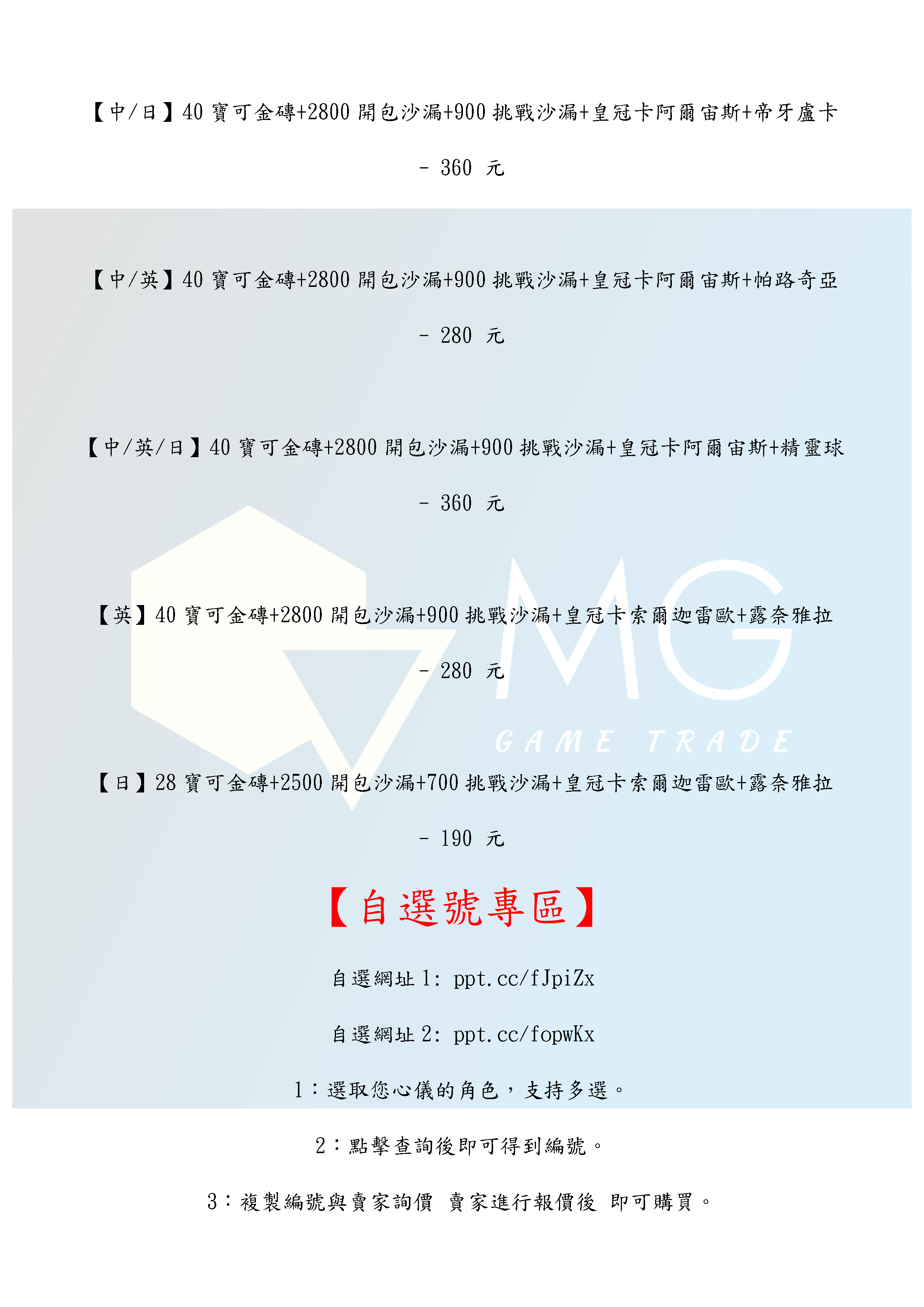 帳號 【初始號】 【MG數碼】 國際服 多石號 多開包沙漏號 初始號 自抽號 自選號 自選組合