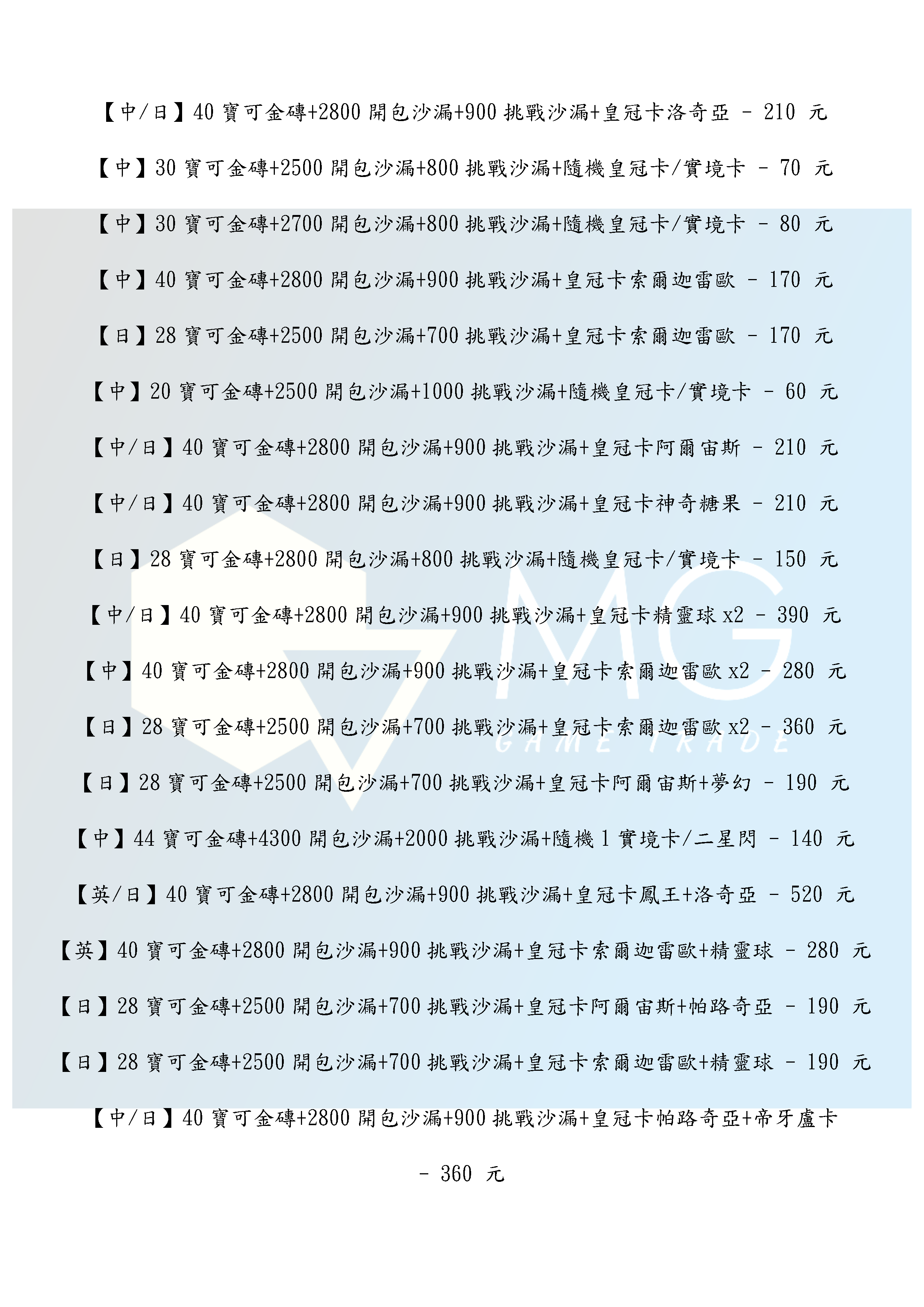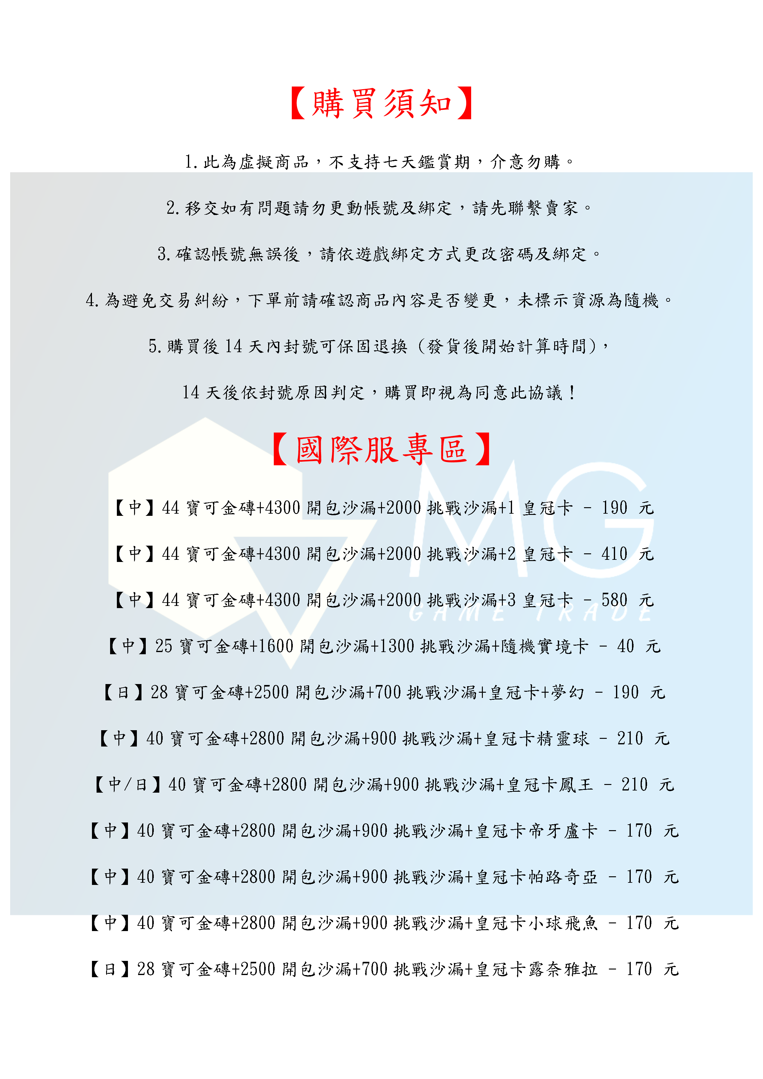 帳號 【初始號】 【MG數碼】 國際服 多石號 多開包沙漏號 初始號 自抽號 自選號 自選組合