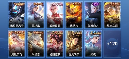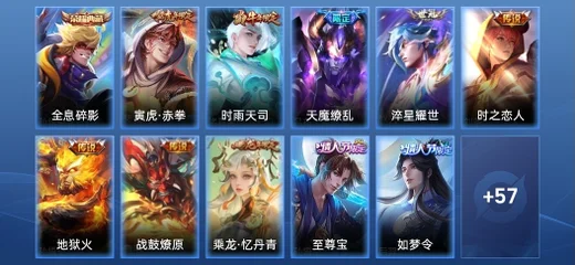 狄仁傑-神器·狴犴令,魯班大師-探海日誌,西施-玲瓏珍味,裴擒虎-擒濤扼浪,孫臏-未來旅行,諸葛亮-掌控之力,桑啟-海鹽詩旅,孫尚香-水果甜心,鬼谷子-五穀豐年,狂鐵-電玩高手,劉禪-天才門將,姜子牙-熾熱元素使,盾山-圓桌騎士,李元芳-雲中旅人,戈婭-危途狂花,司空震-啟蟄,沈夢溪-大漠名商,王昭君-午後時光,明世隱-吟遊魔法,狂鐵-特工戰影,黃忠-芝加哥教父,雅典娜-戰爭女神,白起-夜都怪俠,貂蟬-異域舞娘,劉備-紐約教父,孫尚香-沉穩之力,諸葛亮-星航指揮官,夏侯惇-無限颶風號,關羽-龍騰萬里,弈星-踏雪尋梅,達摩-沙漠行僧,司馬懿-魘語軍師,蘭陵王-暗隱獵獸者,蘇烈-千軍破陣,李白-千年之狐,夏侯惇-乘風破浪,孫尚香-殺手不太冷,蔡文姬-舞動綠茵,花木蘭-劍舞者,劉備-萬事如意,虞姬-雲霓雀翎,甄姬-花好人間,貂蟬-聖誕戀歌,魯班七號-星空夢想,狄仁傑-鷹眼統帥,孫悟空-全息碎影,蔡文姬-薔薇王座,孫策-海之征途,李白-範海辛,李信-灼熱之刃,劉邦-德古拉伯爵,元歌-午夜歌劇院,盾山-御鑾,孫悟空-地獄火,呂布-末日機甲,曜-歸虛夢演,鍾馗-神蹟守衛,明世隱-虹雲星官,曹操-幽靈船長,曹操-死神來了,張飛-五福同心,李元芳-逐浪之夏,呂布-野性能量,狄仁傑-超時空戰士,王昭君-偶像歌手,裴擒虎-天狼狩獵者,百里玄策-威尼斯狂歡,上官婉兒-修竹墨客,狄仁傑-魔術師,虞姬-加勒比小姐,后羿-黃金射手座,蘭陵王-隱刃,典韋-藍色畫面警告,宮本武藏-永珍初新,關羽-天啟騎士,小喬-丁香結,東皇太一-東海龍王,牛魔-御旌,宮本武藏-未來紀元,女媧-朔望之暉,老夫子-功夫老勺,趙雲-皇家上將,伽羅-花見巫女,花木蘭-兔女郎,干將莫邪-第七人偶,孫悟空-西部大鏢客,嬴政-白晝王子,馬可波羅-激情綠茵,周瑜-海軍大將,呂布-獵獸之王,項羽-海灘派對,莊周-奇妙博物學,白起-白色死神,米萊狄-御霄,后羿-精靈王,百里守約-絕影神槍,鍾馗-地府判官,裴擒虎-街頭旋風,張良-幽蘭居士,韓信-白龍吟,魯班七號-木偶奇遇記,鬼谷子-幻樂之宴,楊玉環-遇見飛天,狄仁傑-陰陽師,李元芳-特種部隊,狂鐵-御獅,鍾無豔-海灘麗影,盾山-極冰防禦線,雅典娜-冰冠公主,扁鵲-化身博士,鎧-龍域領主,典韋-窮奇,韓信-教廷特使,羋月-重明,曹操-燭龍,妲己-少女阿狸,太乙真人-饕餮,蘭陵王-金庭之子,亞瑟-死亡騎士,米萊狄-契約魔法